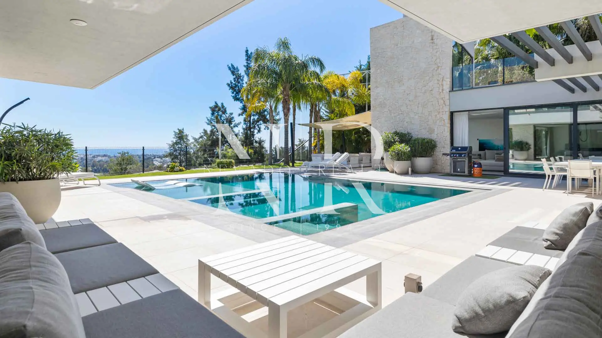 Outside, the villa is completed with a private swimming pool, immaculate gardens, covered and open terraces, as well as a solarium ideal for enjoying the sun and the views. Other amenities include a laundry room, storage room, alarm system and private garage.