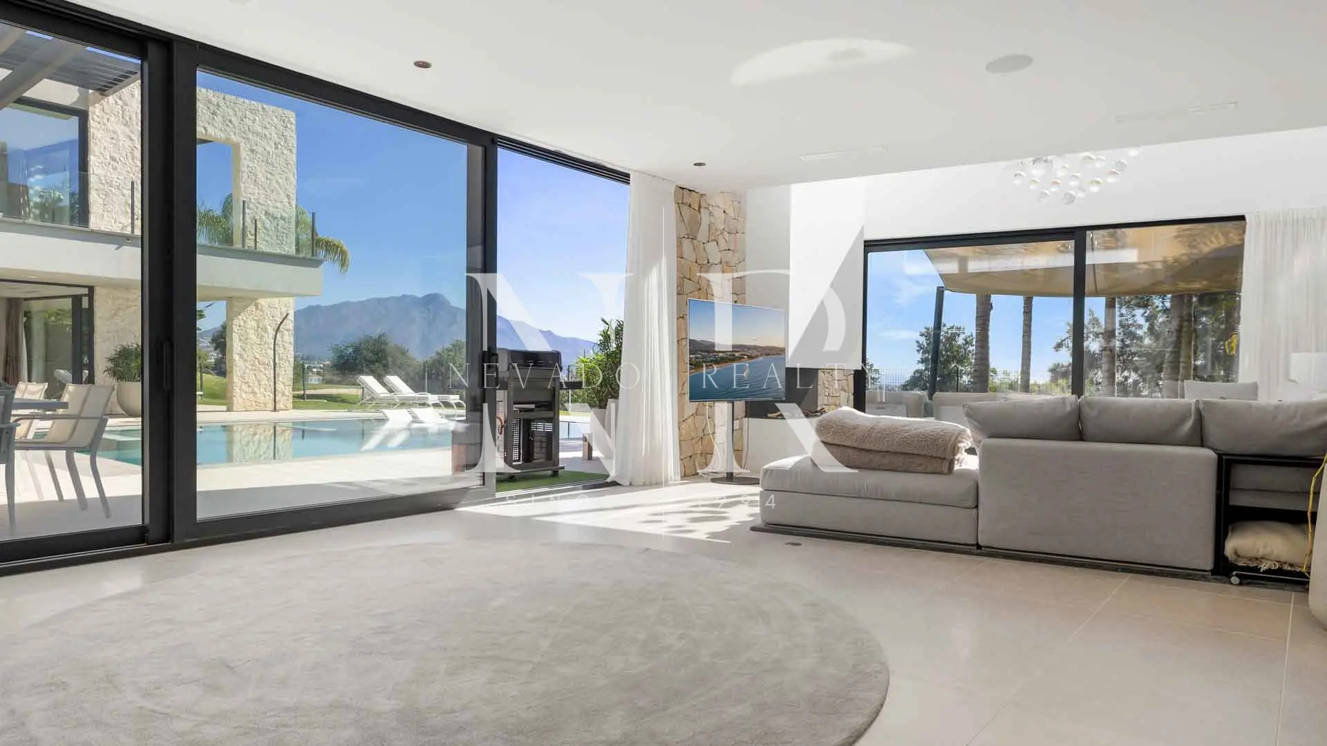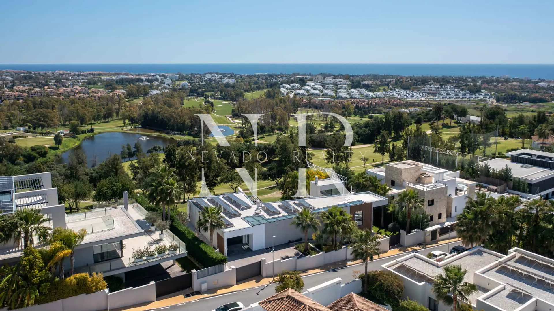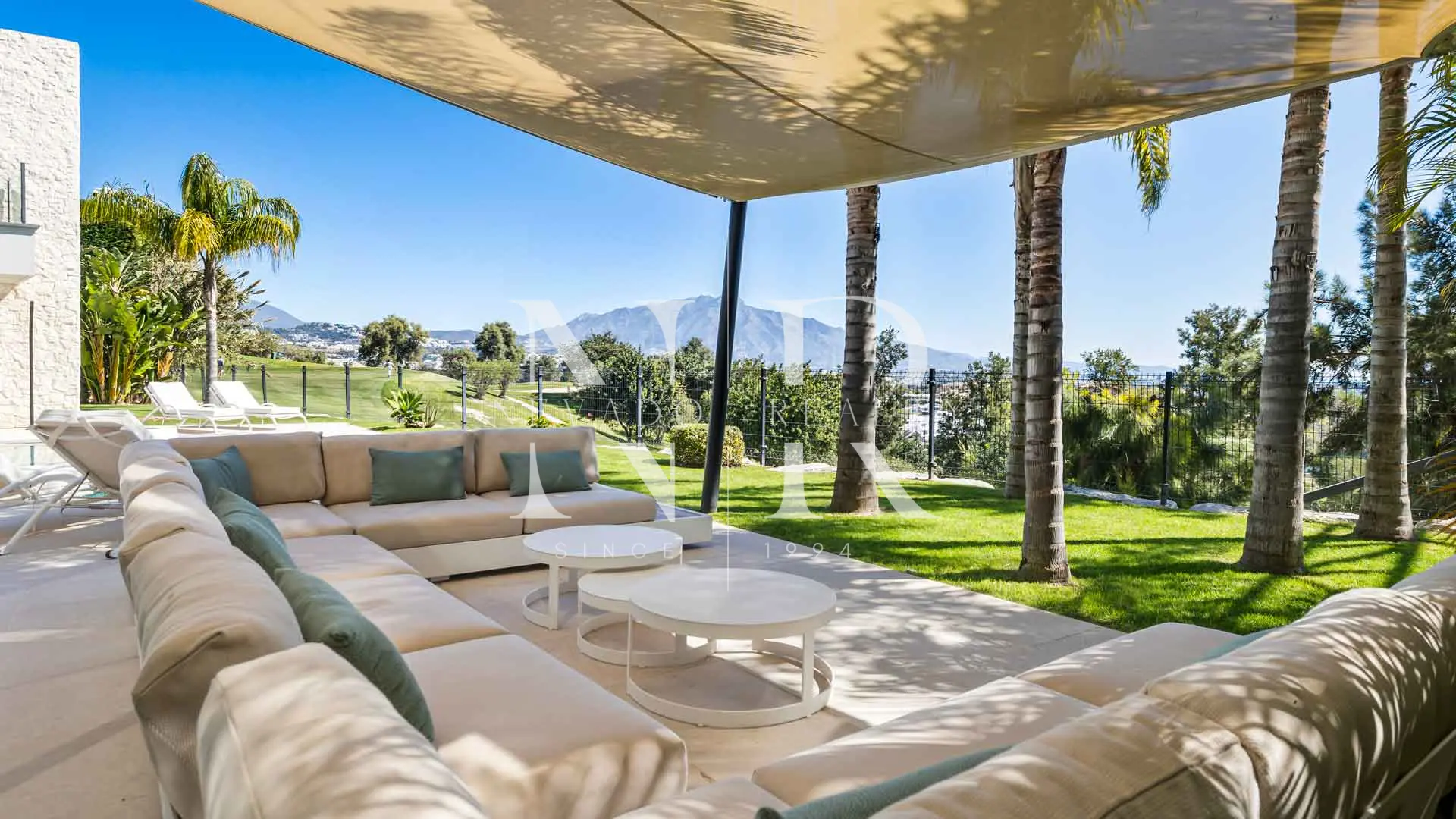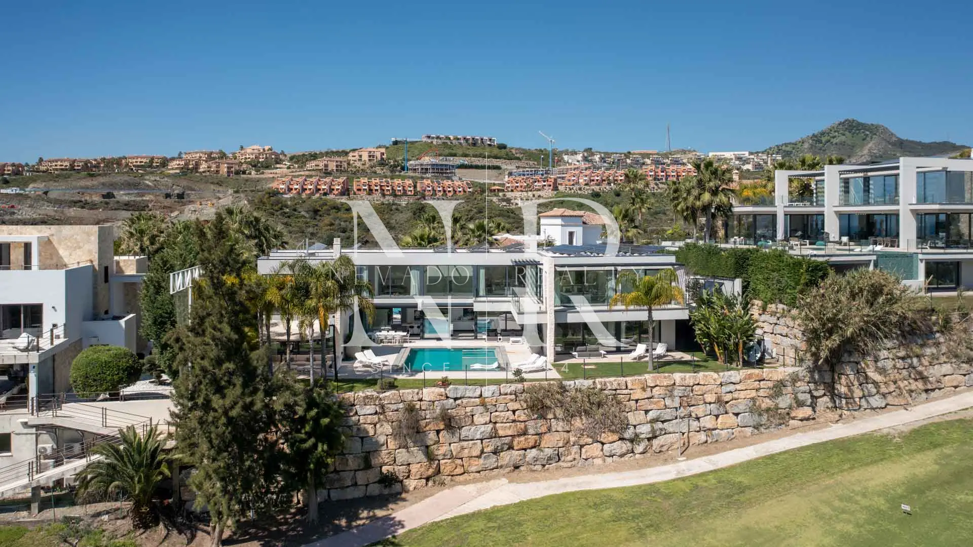 Villa in La Alquería with panoramic sea and golf views for sale. Located in one of the most prestigious areas of the Costa del Sol, this spectacular five-bedroom villa is situated on the front line of the Atalaya Golf Club in Benahavís, a privileged location that combines privacy, stunning views and proximity to essential amenities. Facing southeast, the property enjoys excellent natural light and unobstructed views of the sea, mountains and golf course greens.