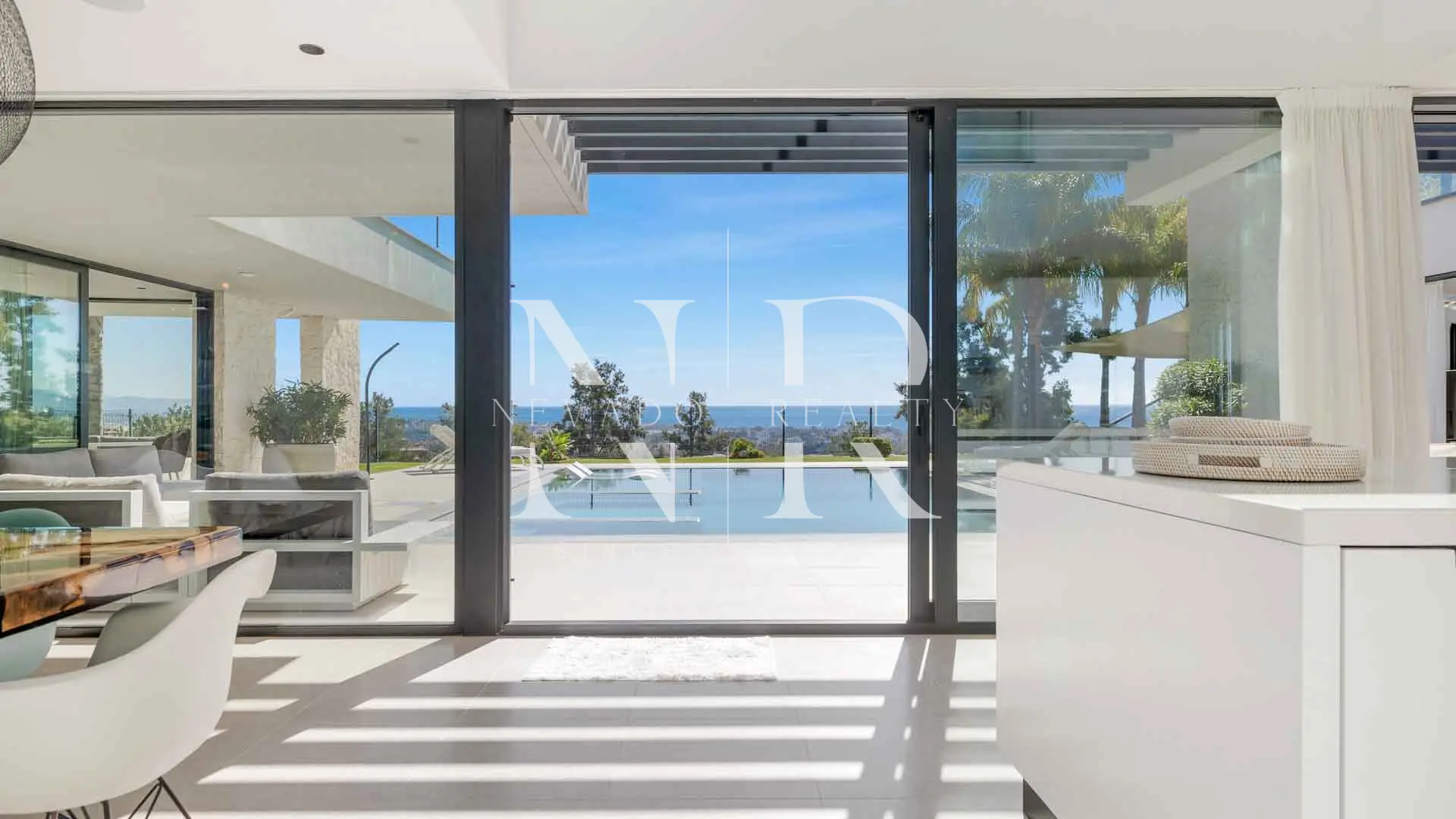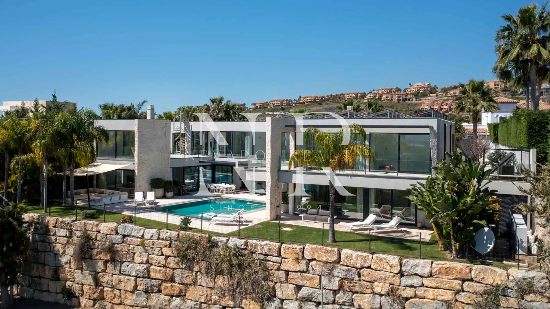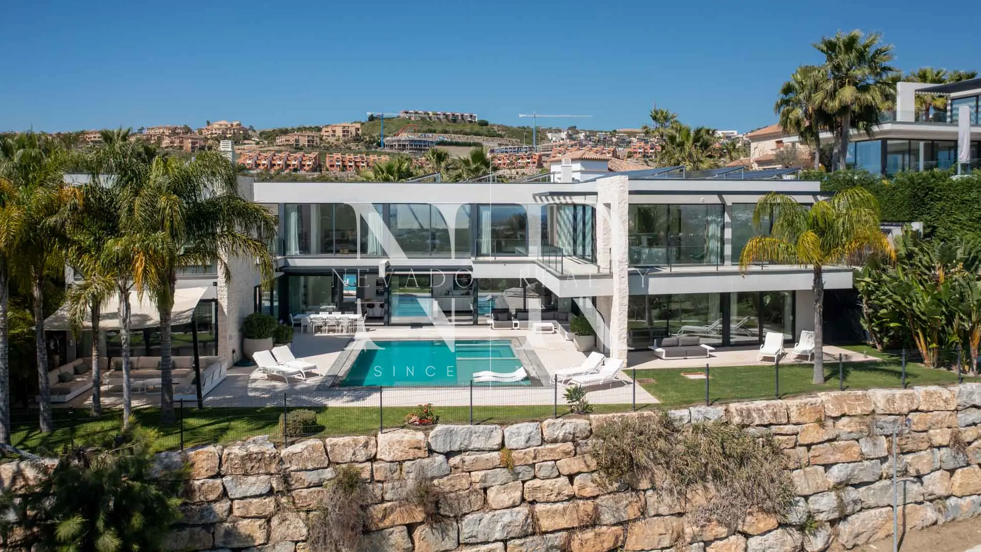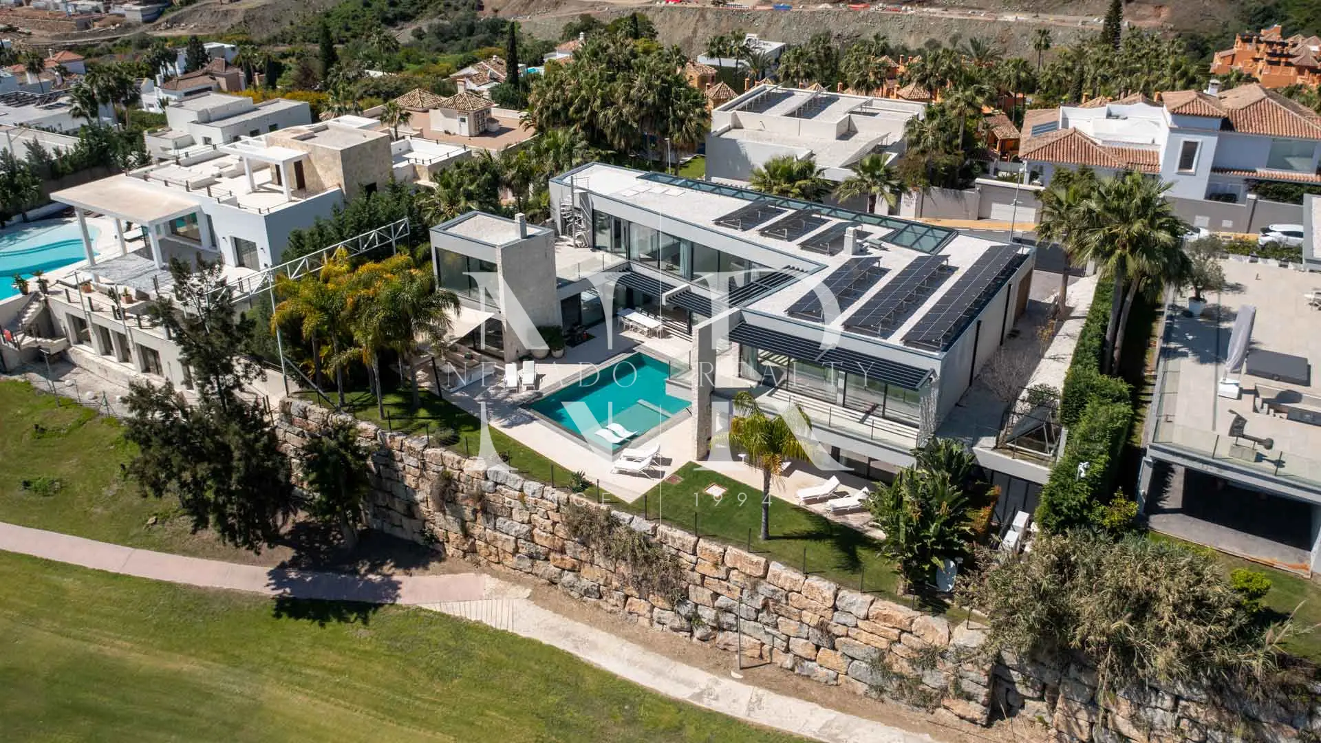 Villa in La Alquería with panoramic sea and golf views for sale. Located in one of the most prestigious areas of the Costa del Sol, this spectacular five-bedroom villa is situated on the front line of the Atalaya Golf Club in Benahavís, a privileged location that combines privacy, stunning views and proximity to essential amenities. Facing southeast, the property enjoys excellent natural light and unobstructed views of the sea, mountains and golf course greens.