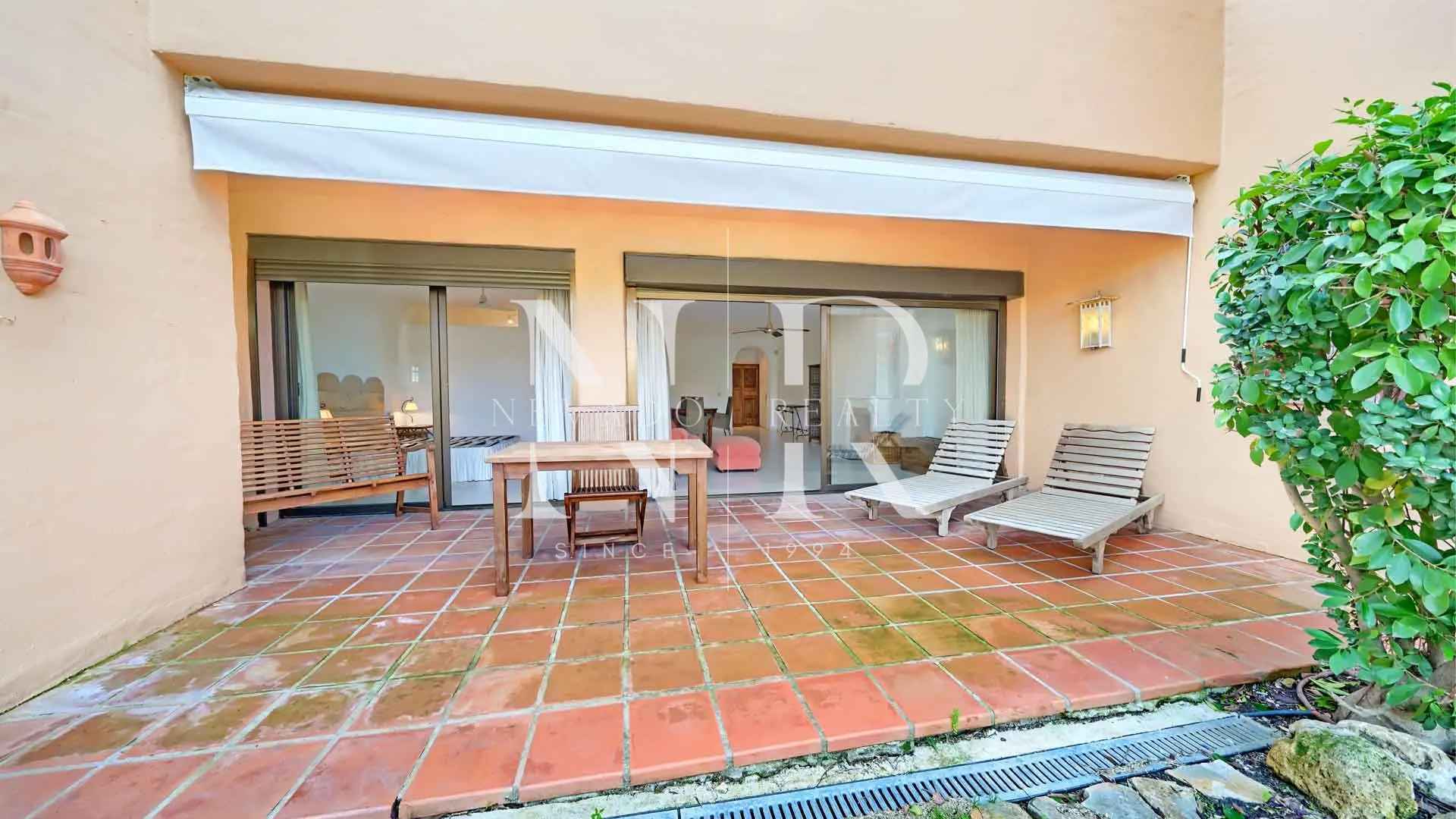 Apartment in La Cartuja Golf Estepona for sale. This beautiful apartment is located in a gated community with 24-hour security, in the middle of a golf course and with direct access to a vast green area.
