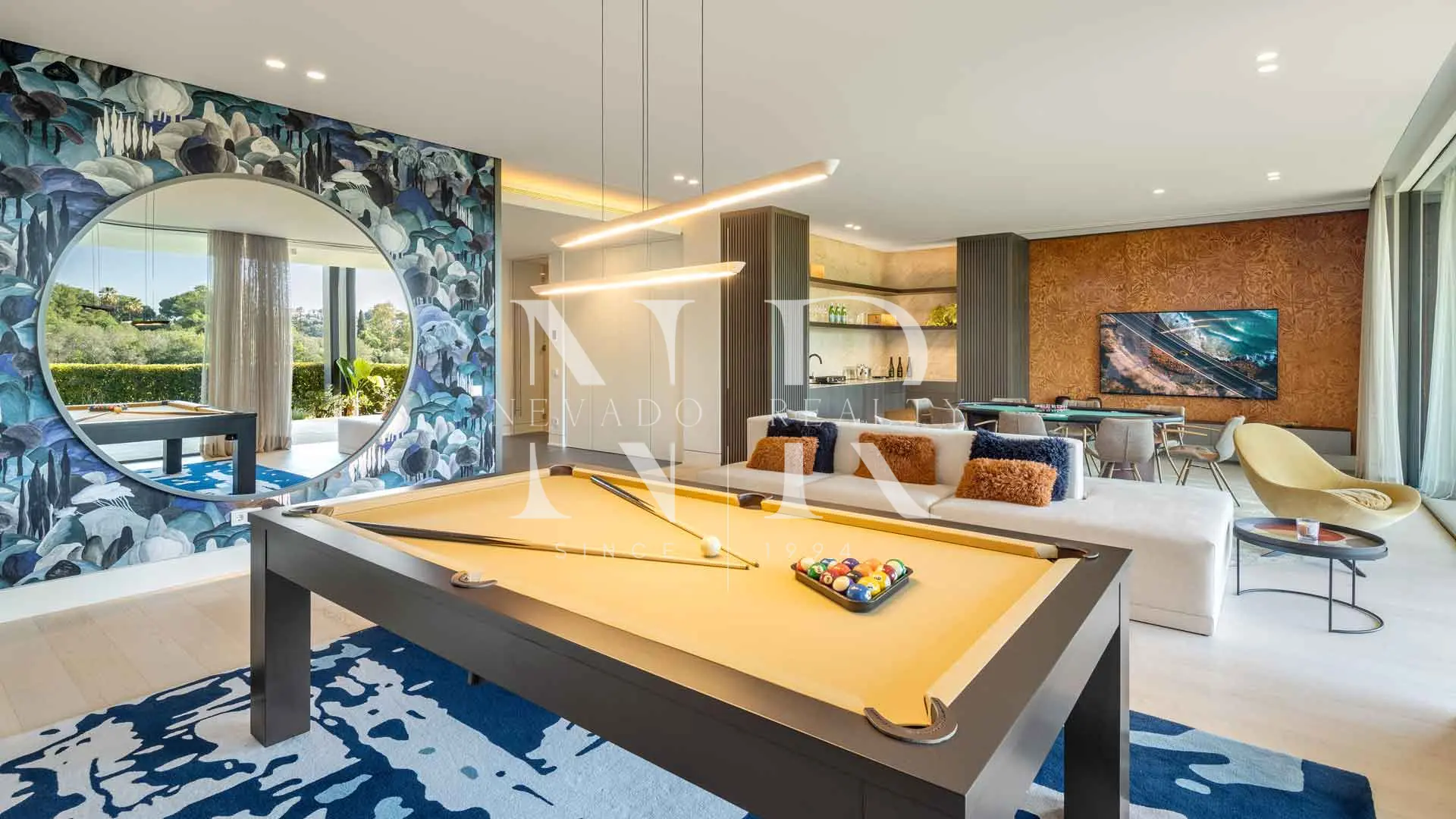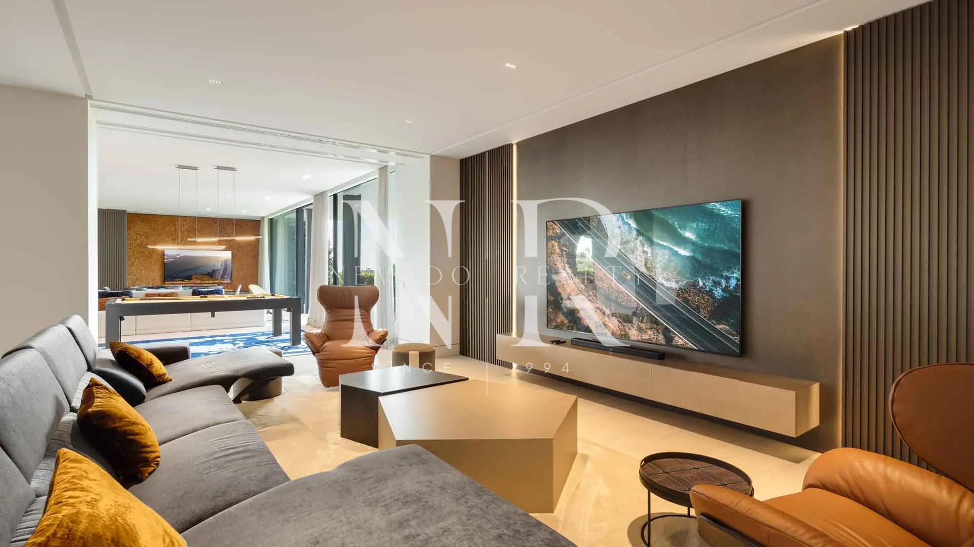 The main floor houses four exquisitely designed bedrooms, including a spacious master suite with a bespoke dressing room and private bathroom. The lower level is dedicated to wellness and entertainment, offering a state-of-the-art gym, spa and a versatile entertainment area equipped with pool table, poker table and home cinema, providing a holistic lifestyle experience.
