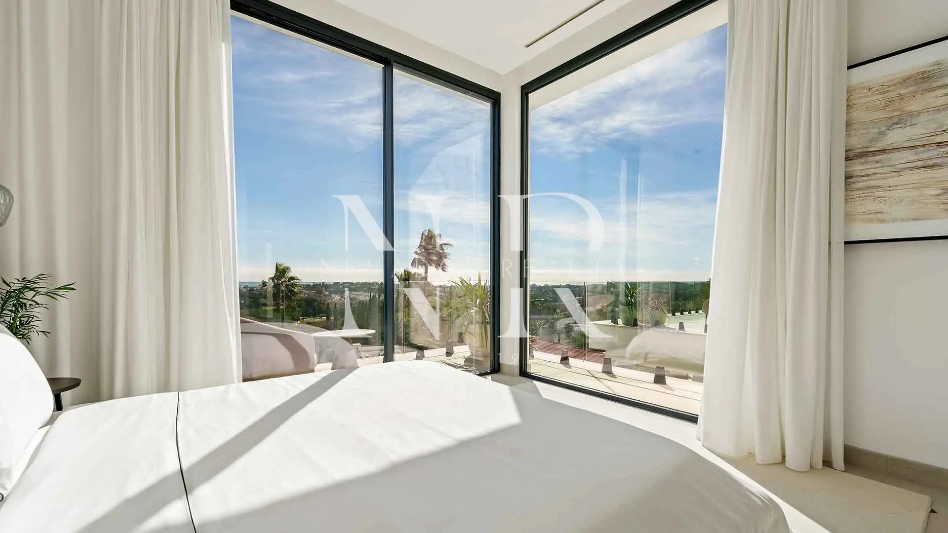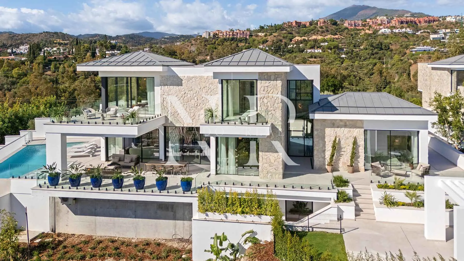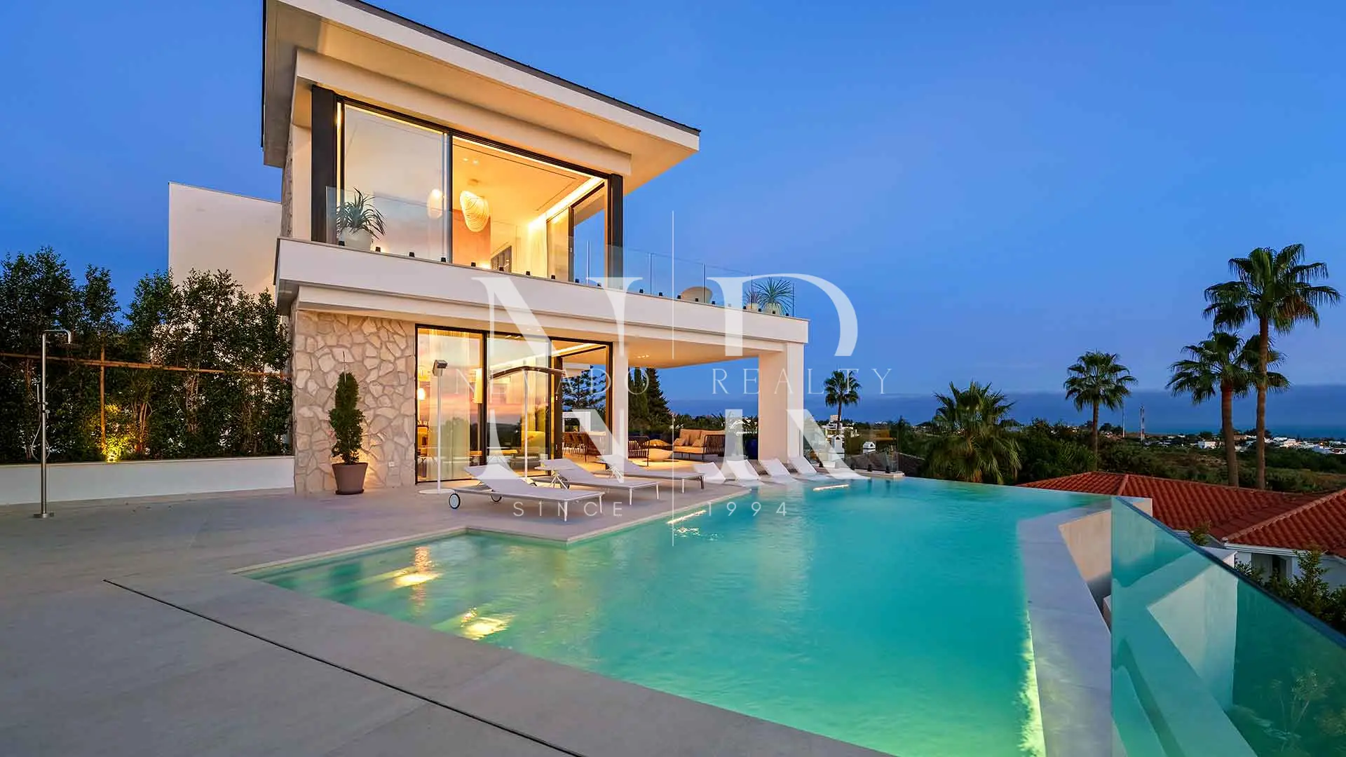 Newly built villa in La Quinta with panoramic sea views for sale. Located in the exclusive private enclave of Tresora Villas, in La Quinta, Marbella. Designed by Cogitari Homes, it combines sophisticated architecture with the serenity of the natural environment, framed between the Mediterranean Sea and La Concha Mountain. Its elevated position guarantees absolute privacy and panoramic views of the golf valley and the coast.