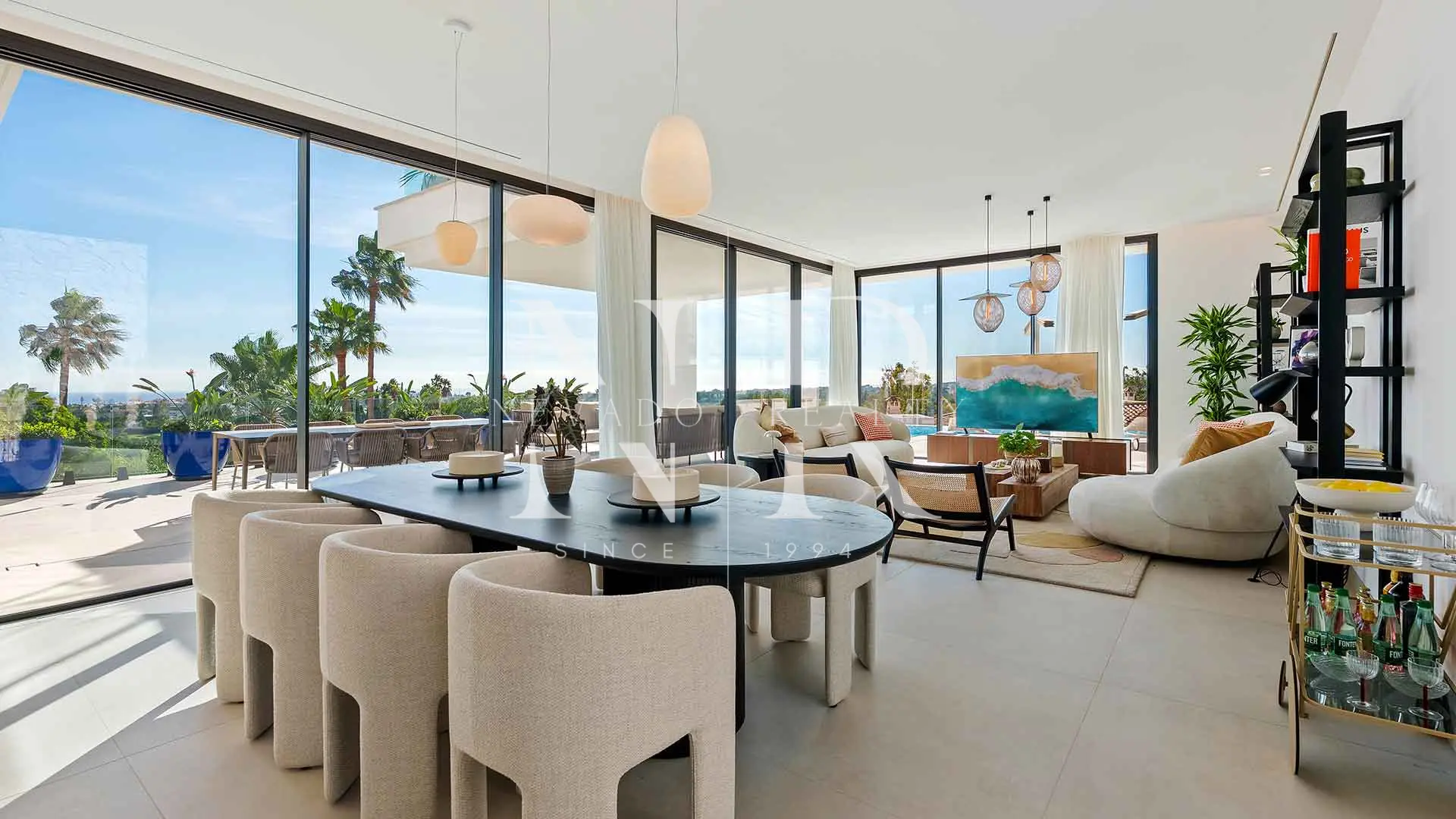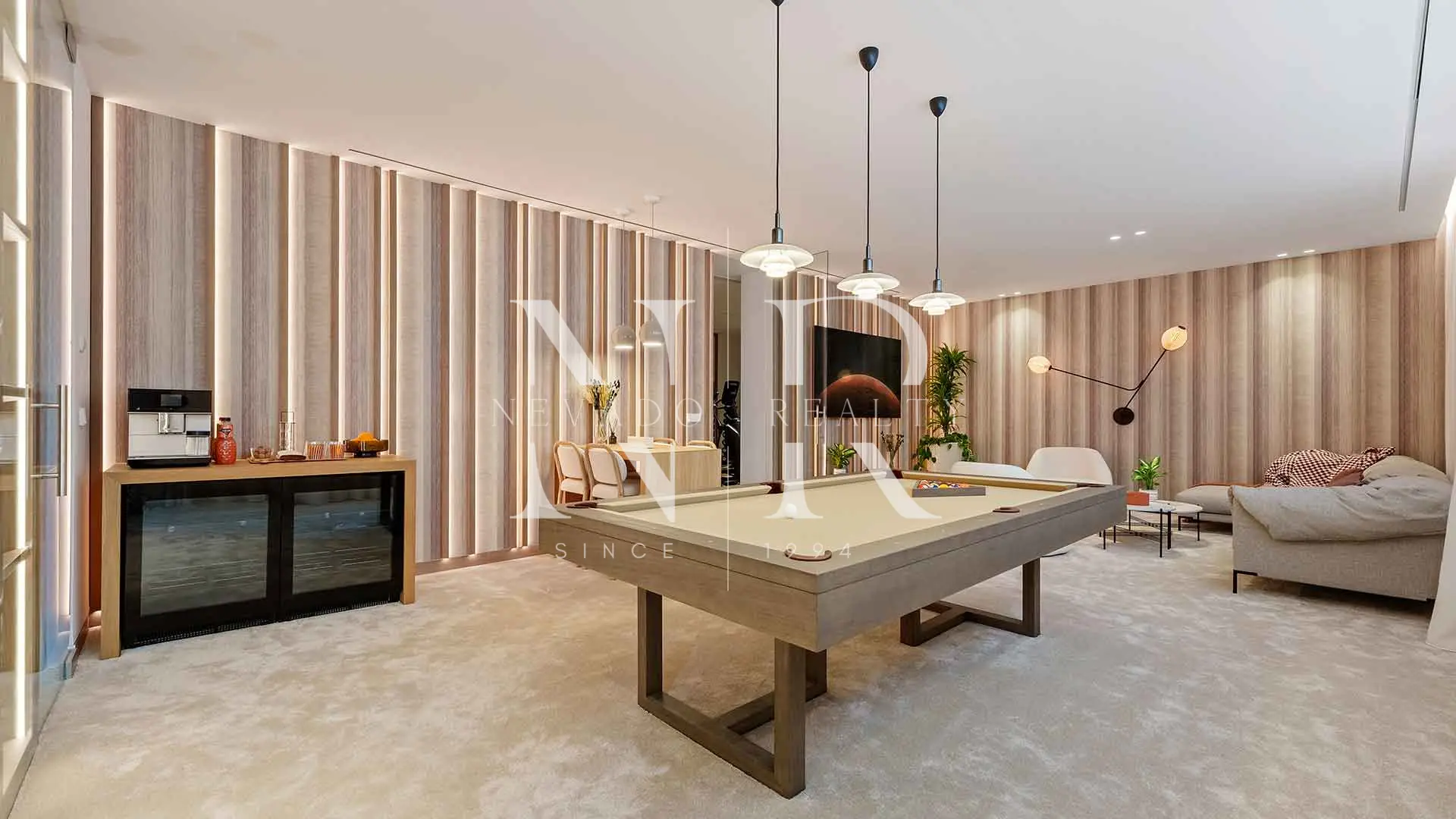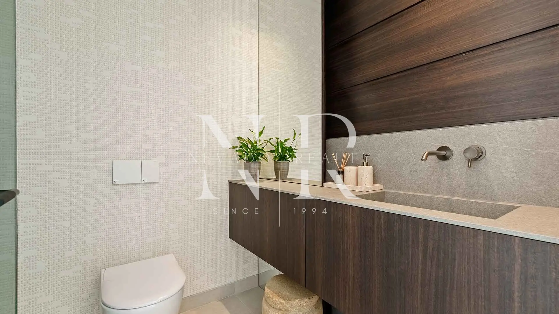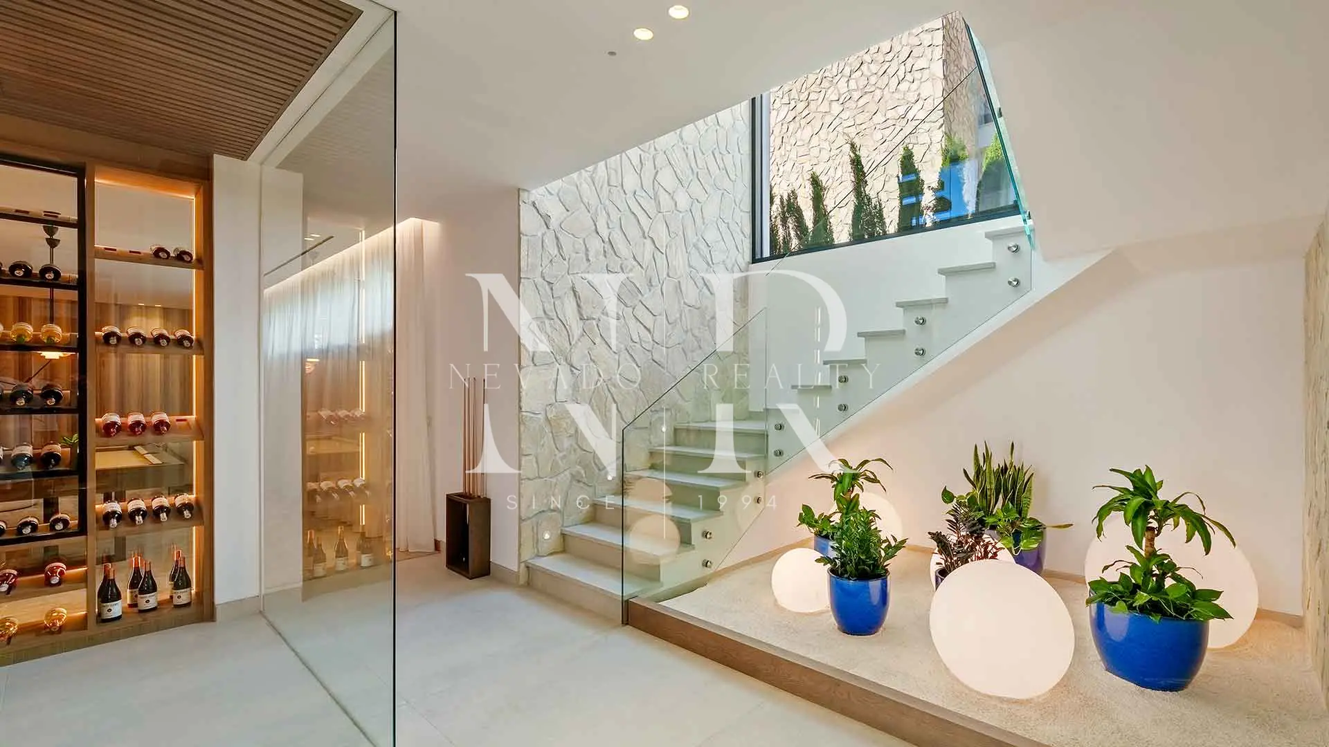 The villa is distributed over three spacious and bright levels, with five bedrooms and five bathrooms. The main floor offers open spaces connecting the living room, dining room and a designer kitchen, all facing large terraces and a 51 m² infinity pool. Each room has been designed to maximise natural light and merge the interior and exterior into a fluid living experience.