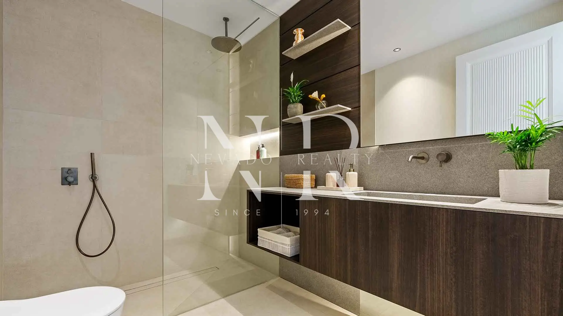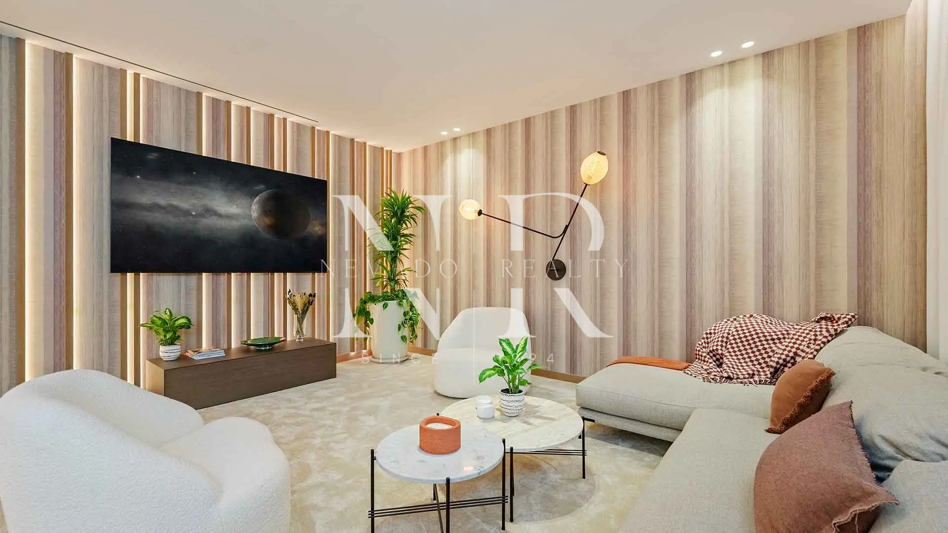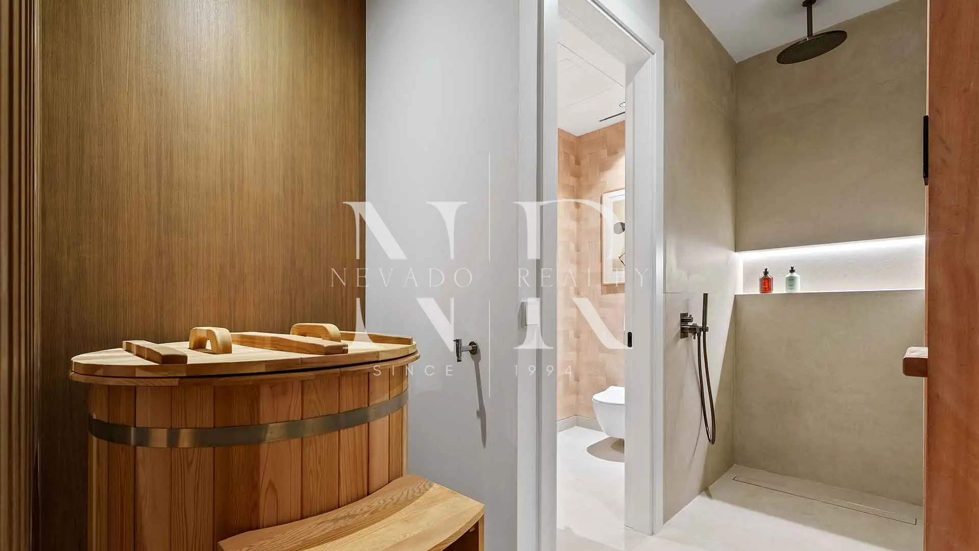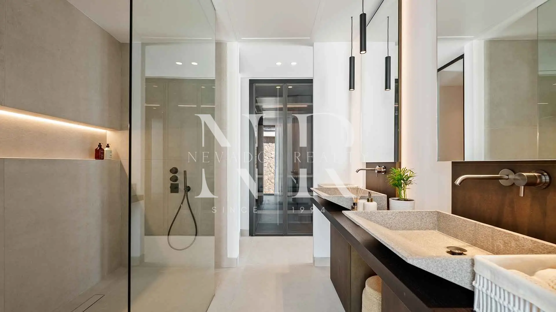 The villa is distributed over three spacious and bright levels, with five bedrooms and five bathrooms. The main floor offers open spaces connecting the living room, dining room and a designer kitchen, all facing large terraces and a 51 m² infinity pool. Each room has been designed to maximise natural light and merge the interior and exterior into a fluid living experience.