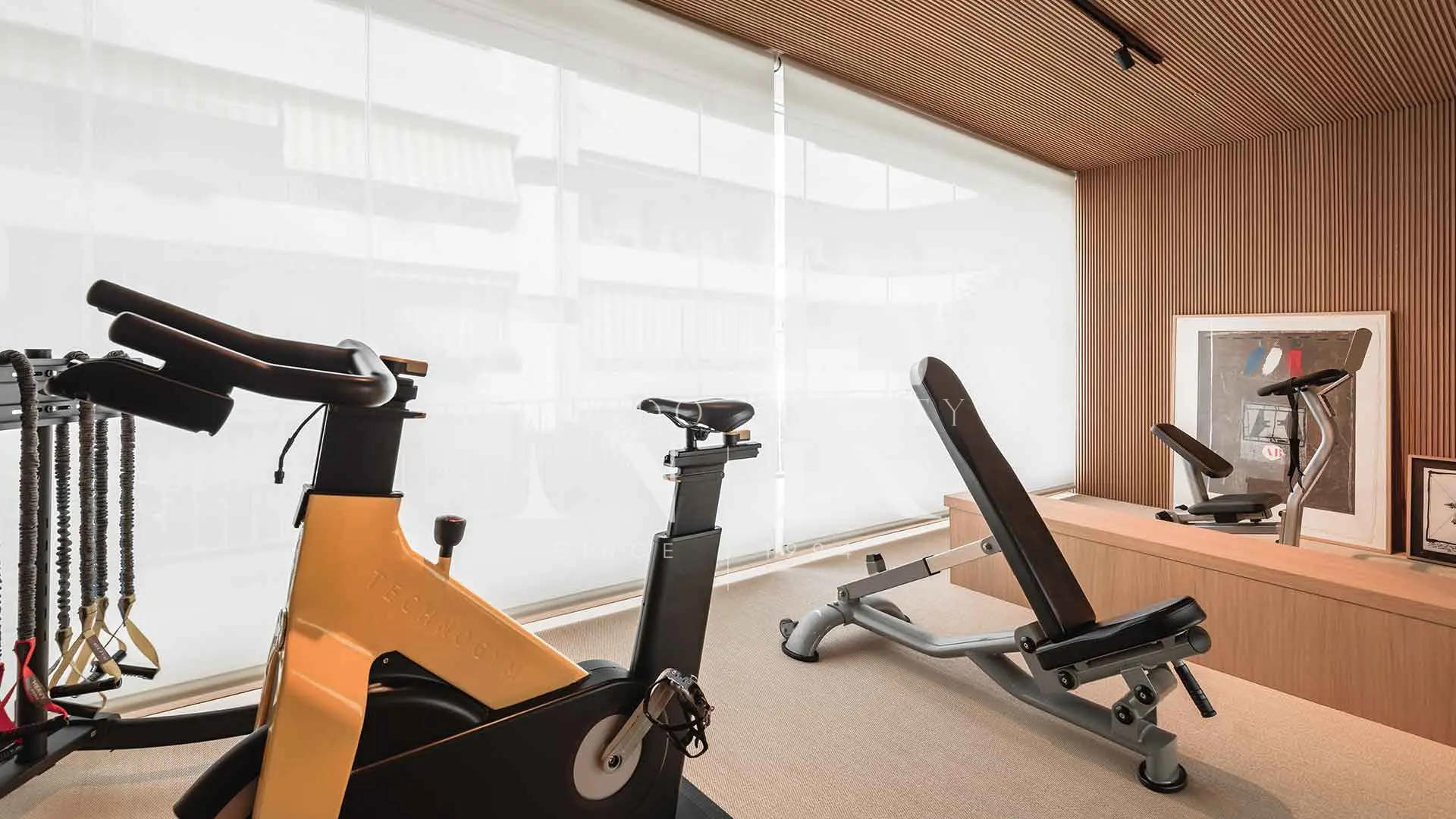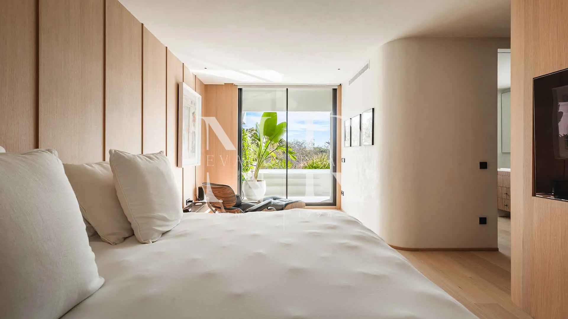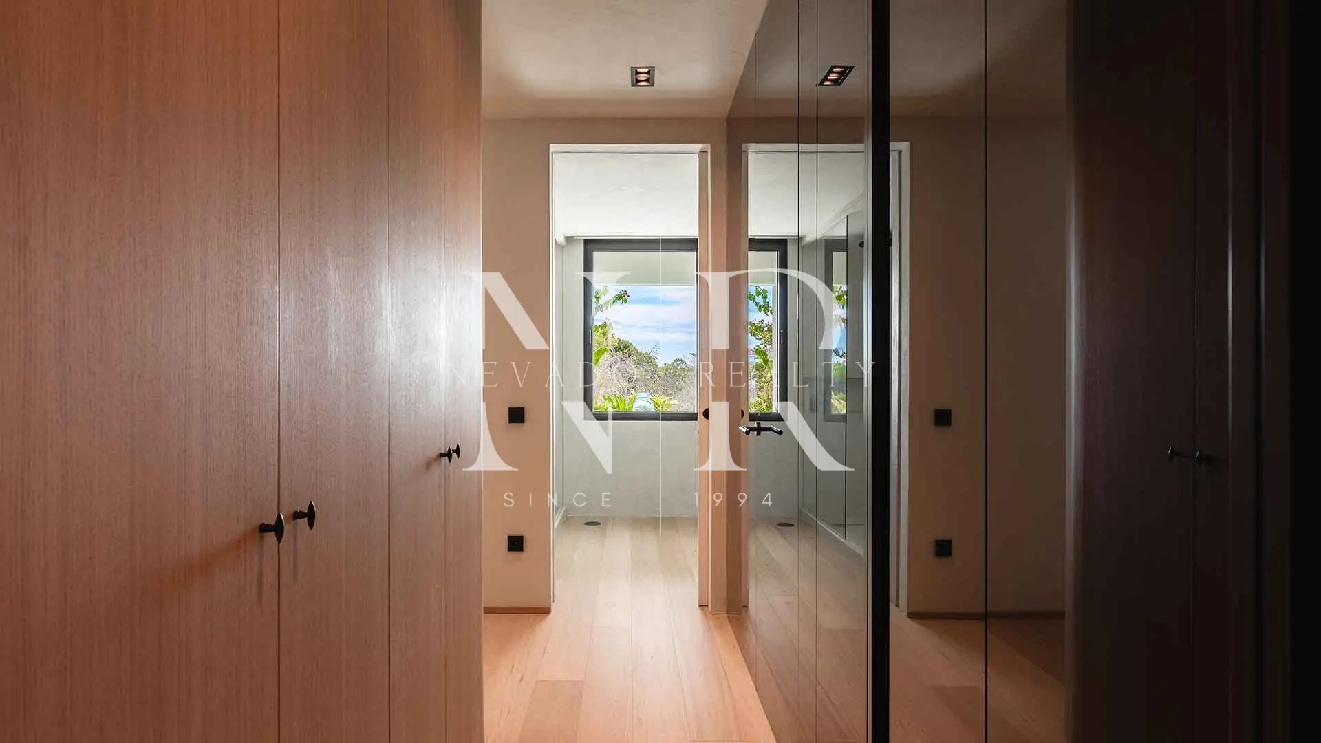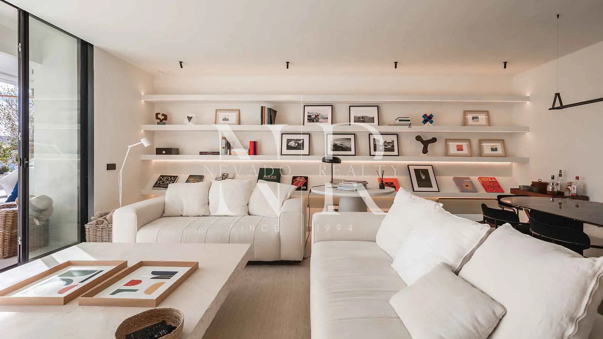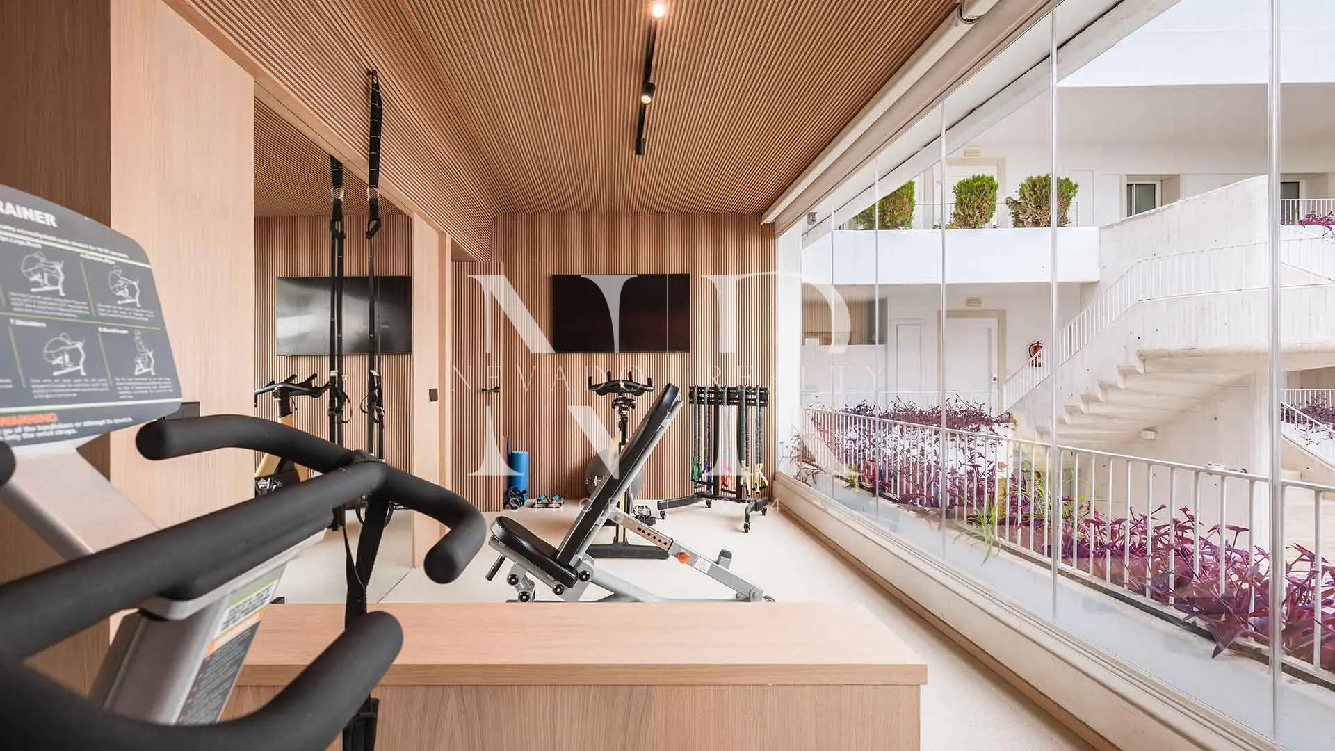 The interior has been designed with attention to detail, combining functionality and sophistication. The entrance hall leads to a bright living-dining area with direct access to the terrace. The open-plan kitchen, clad in oak panelling, features high-end appliances and a minimalist design. The master bedroom en suite offers a spacious dressing room and an elegant bathroom, while the two additional bedrooms also have private bathrooms, providing maximum comfort for both family and guests. In addition, the property has a private integrated gym.