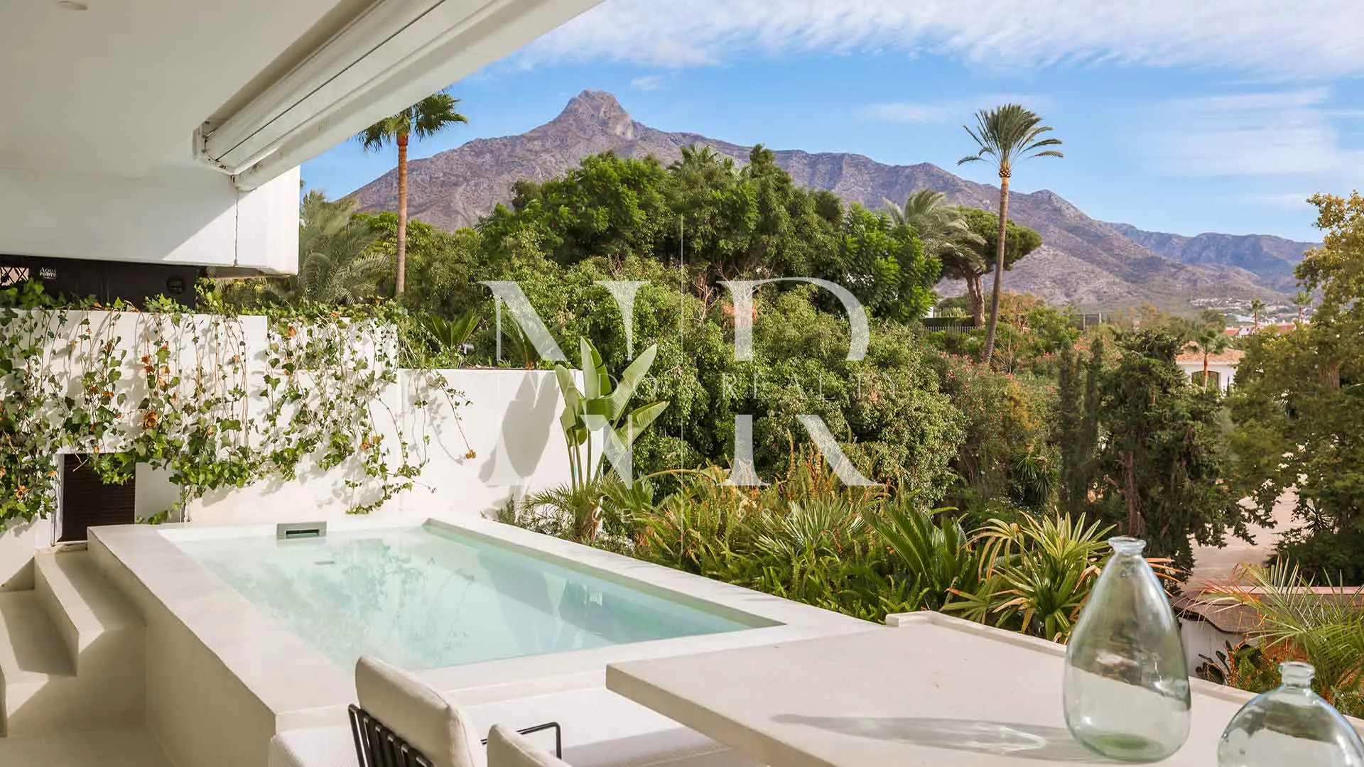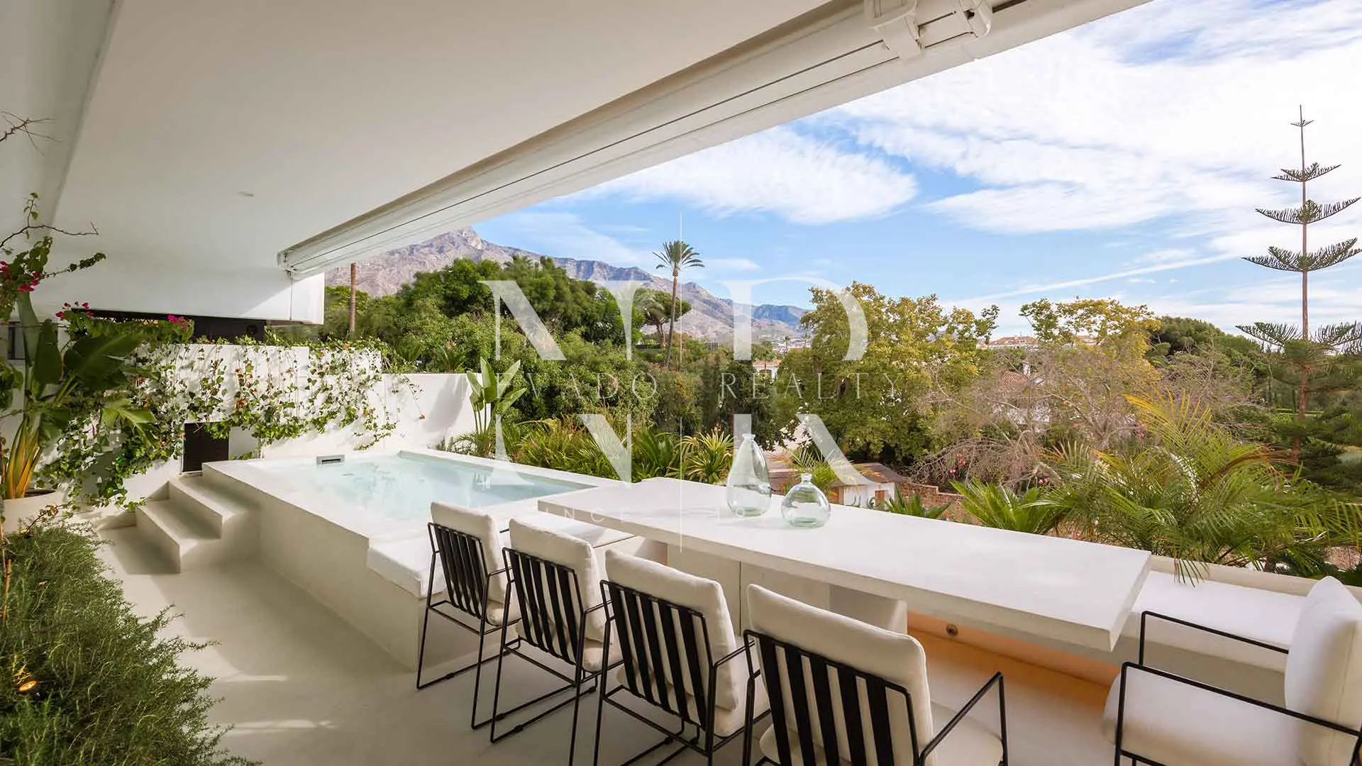 All on one floor, the flat stands out for its contemporary style, spacious rooms and an impressive 100 m² terrace with views of La Concha mountain. The outdoor area includes a private heated swimming pool, outdoor dining area and several seating areas, ideal for enjoying Marbella’s climate all year round.