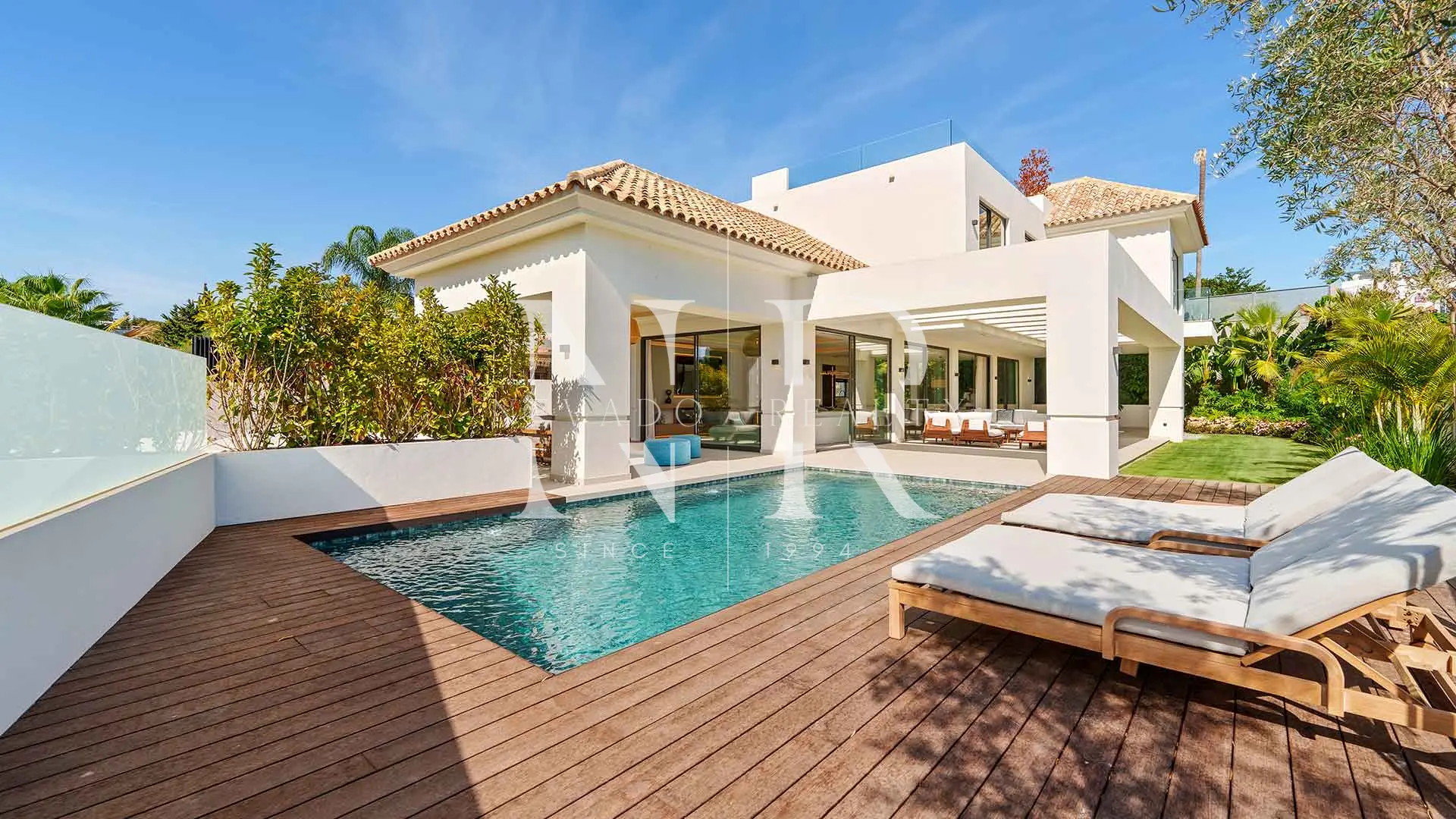 Villa for sale in the Linda Vista Urbanization, just steps from the beach. Located in one of the most sought-after areas of San Pedro de Alcántara, this contemporary villa enjoys a privileged location, only 300 meters from the beach.