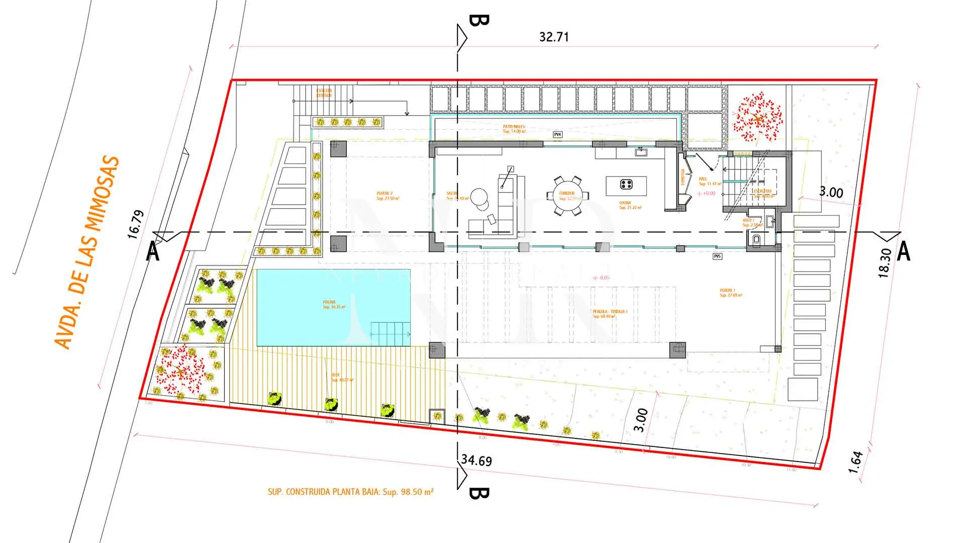 Situated in a quiet, established residential area, surrounded by tree-lined streets and with excellent access to all amenities, the property enjoys a comfortable and family-friendly environment. Surrounded by greenery, the villa offers an ideal private retreat to enjoy the Mediterranean climate. Outside, highlights include a swimming pool with wooden decking, spacious covered terraces for dining or relaxing outdoors, and a solarium perfect for unwinding or entertaining guests.