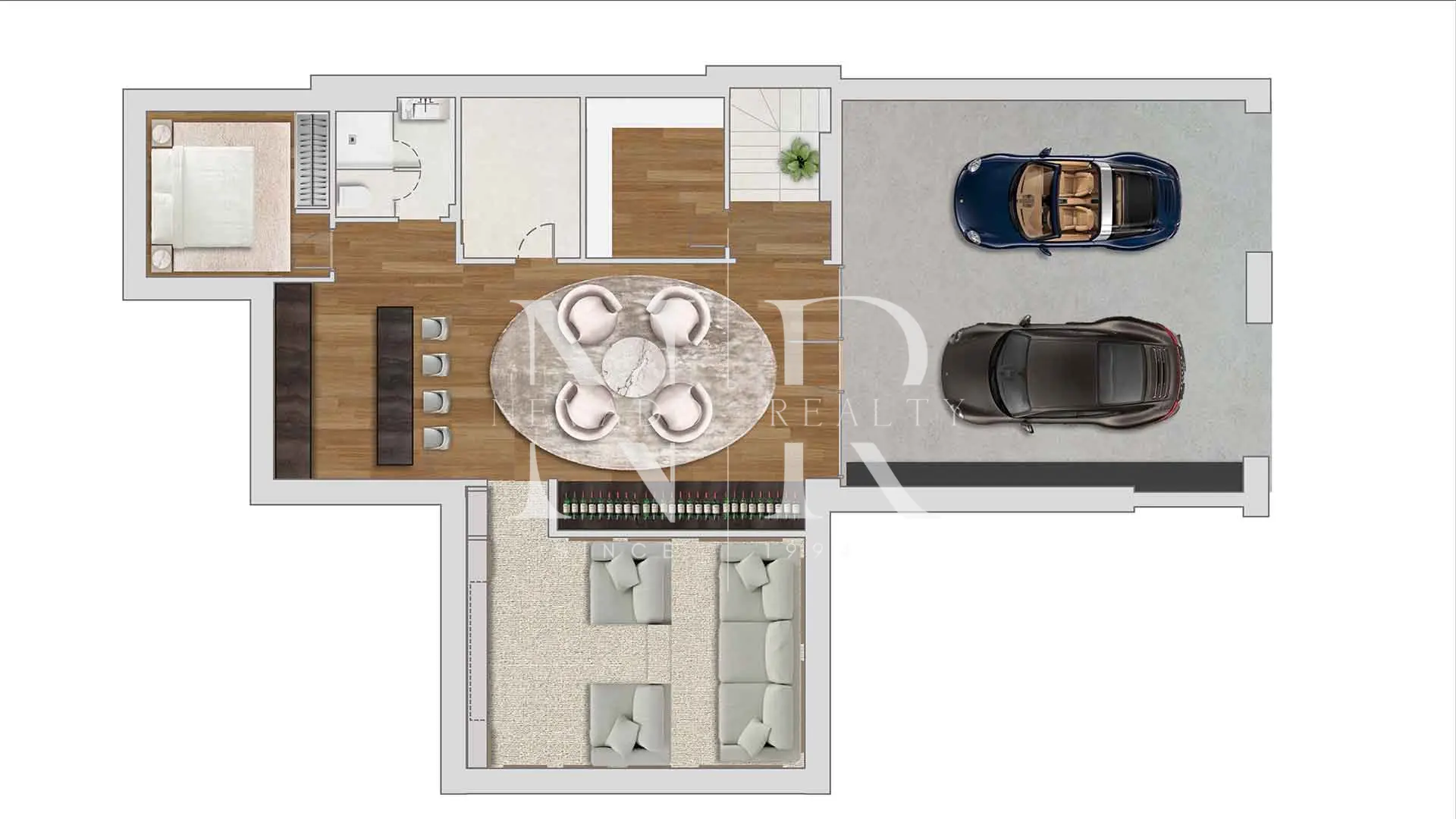 As for the exterior, the garden, the 50 m² private swimming pool and the outdoor dining area with barbecue create the perfect setting for relaxing, socialising and unwinding. Added to this is a lower level dedicated to leisure and entertainment, featuring a bar, lounge area, bespoke glass-walled wine cellar and cinema room, creating a property suited both to family life and to hosting guests with an outstanding level of exclusivity. The private two-car garage also features a unique glass enclosure that integrates the cars into the interior design.