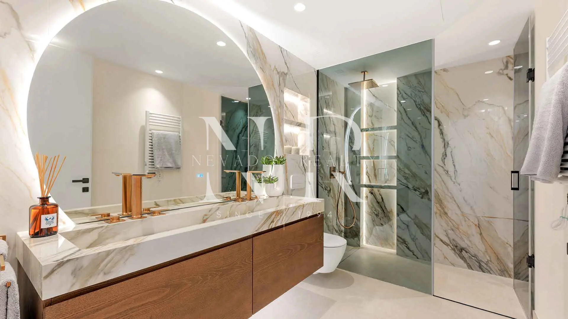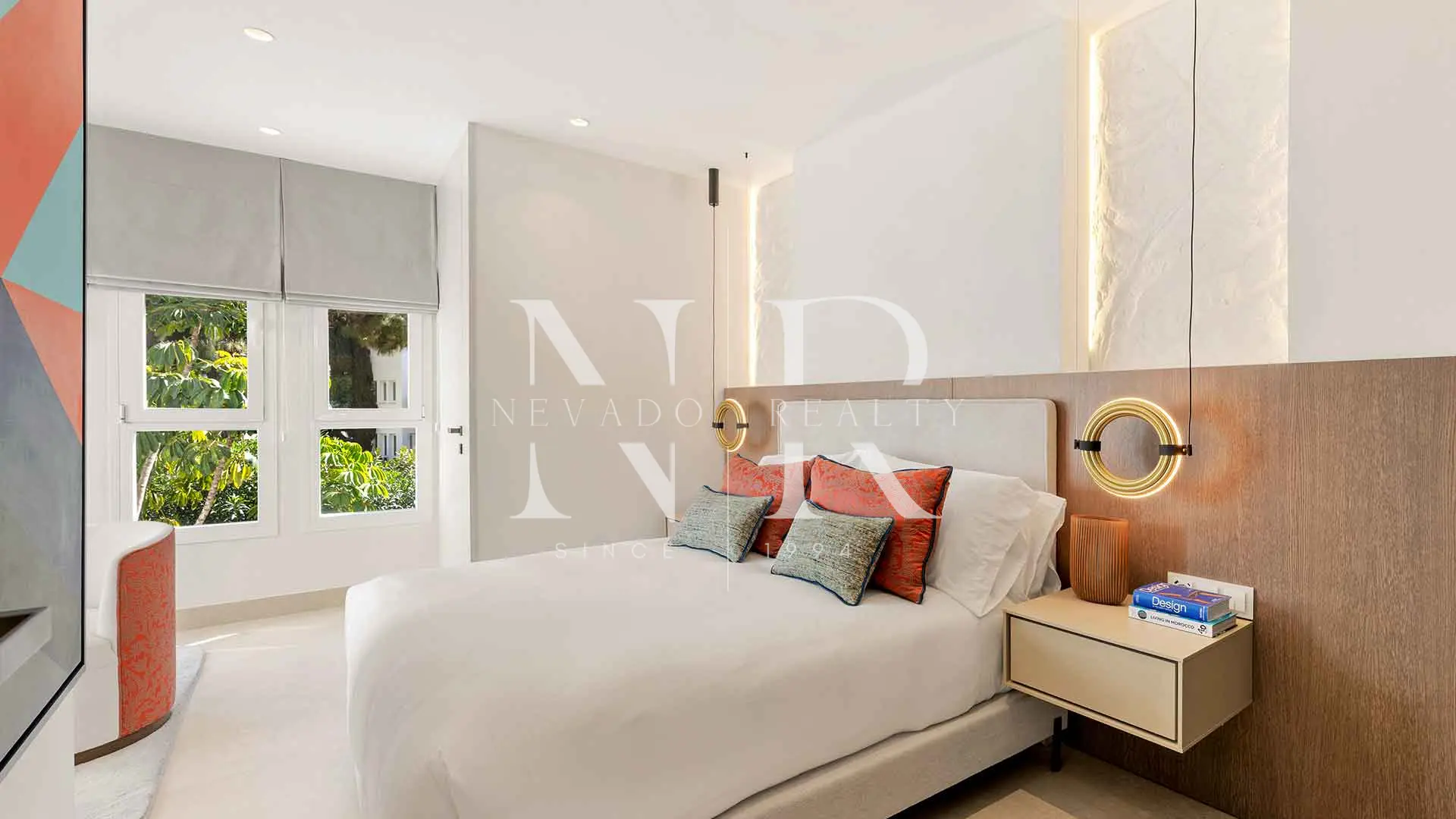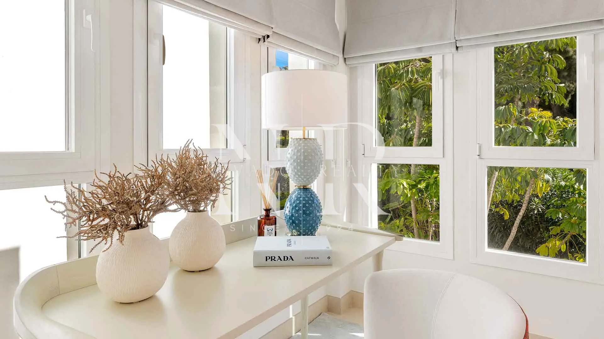 Combining two apartments into a single spacious residence, it offers 280 m² of interior space and 70 m² of sunny terraces. It features 6 bedrooms and 4 bathrooms distributed throughout a generous and bright space. Its southwest orientation floods the interiors with natural light, while the terraces offer stunning views of the gardens, the Mediterranean Sea, and La Concha Mountain.