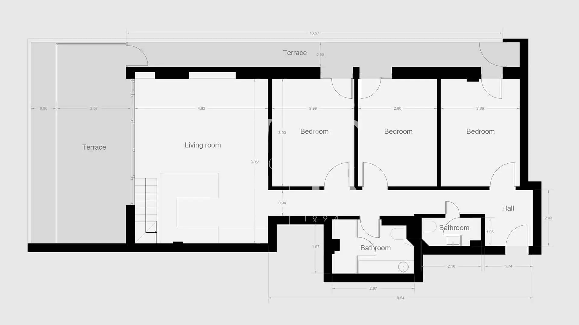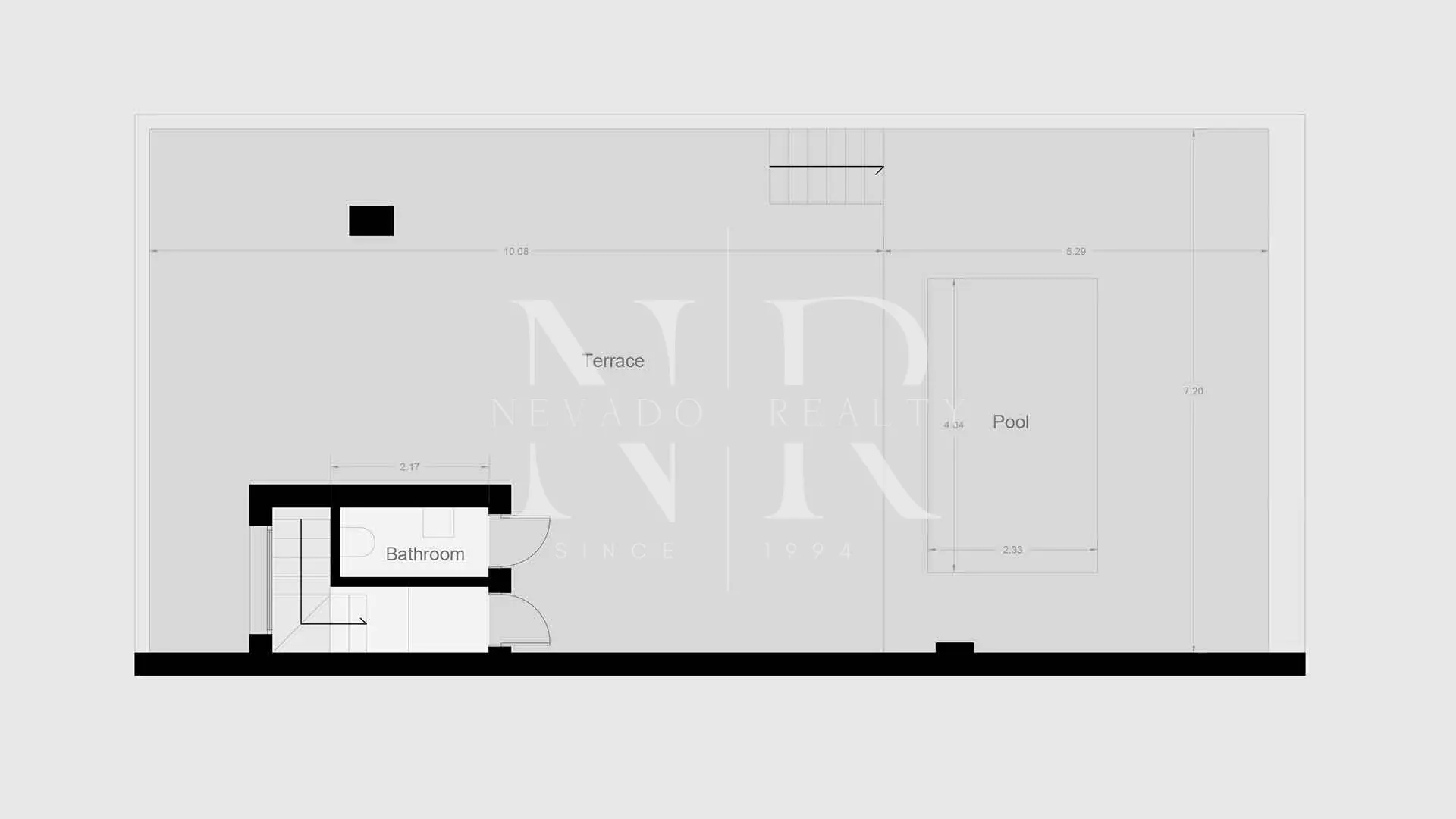 It boasts three exquisitely designed bedrooms and three bathrooms. The private rooftop terrace features a spectacular swimming pool and a modern barbecue area.