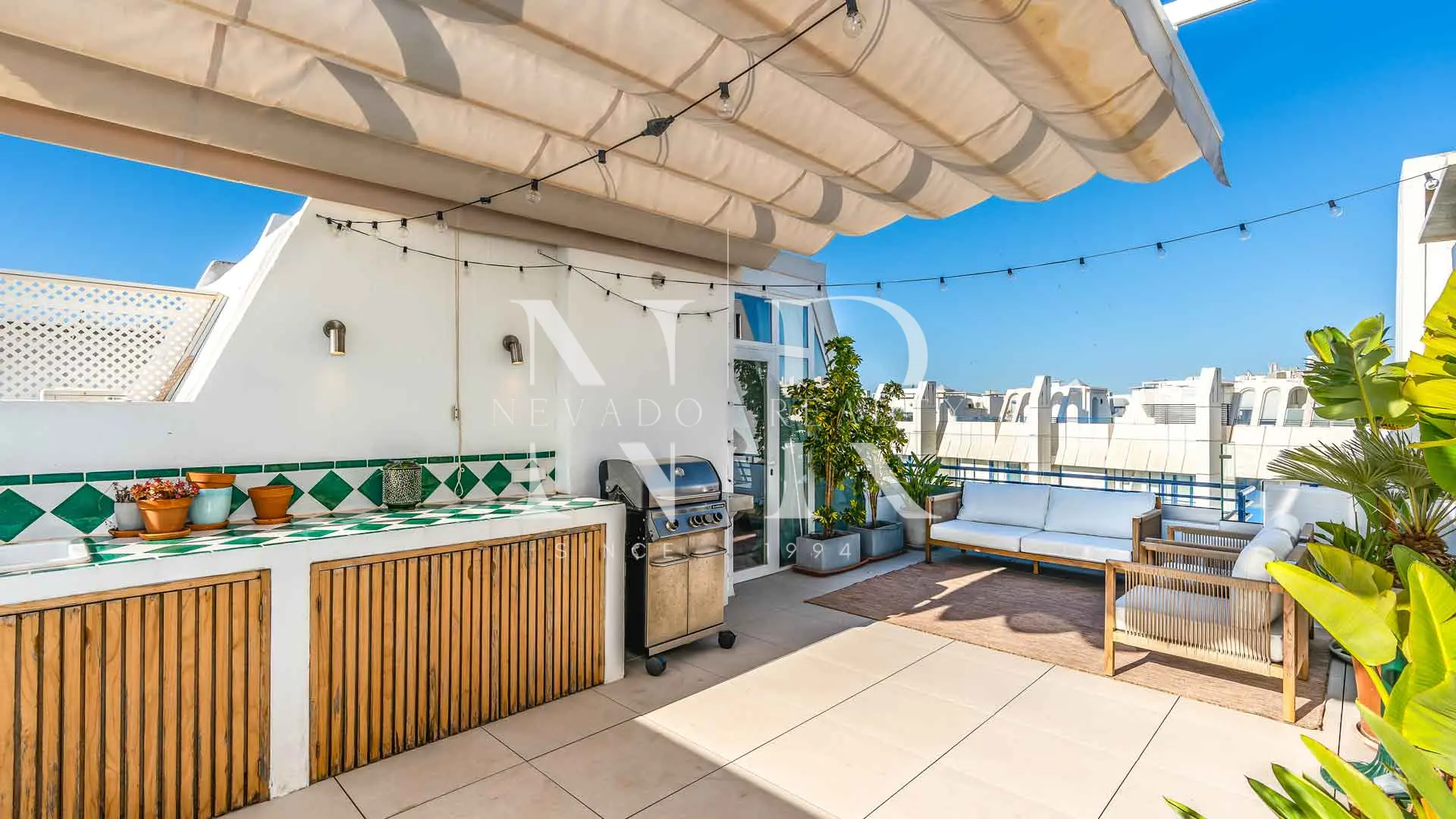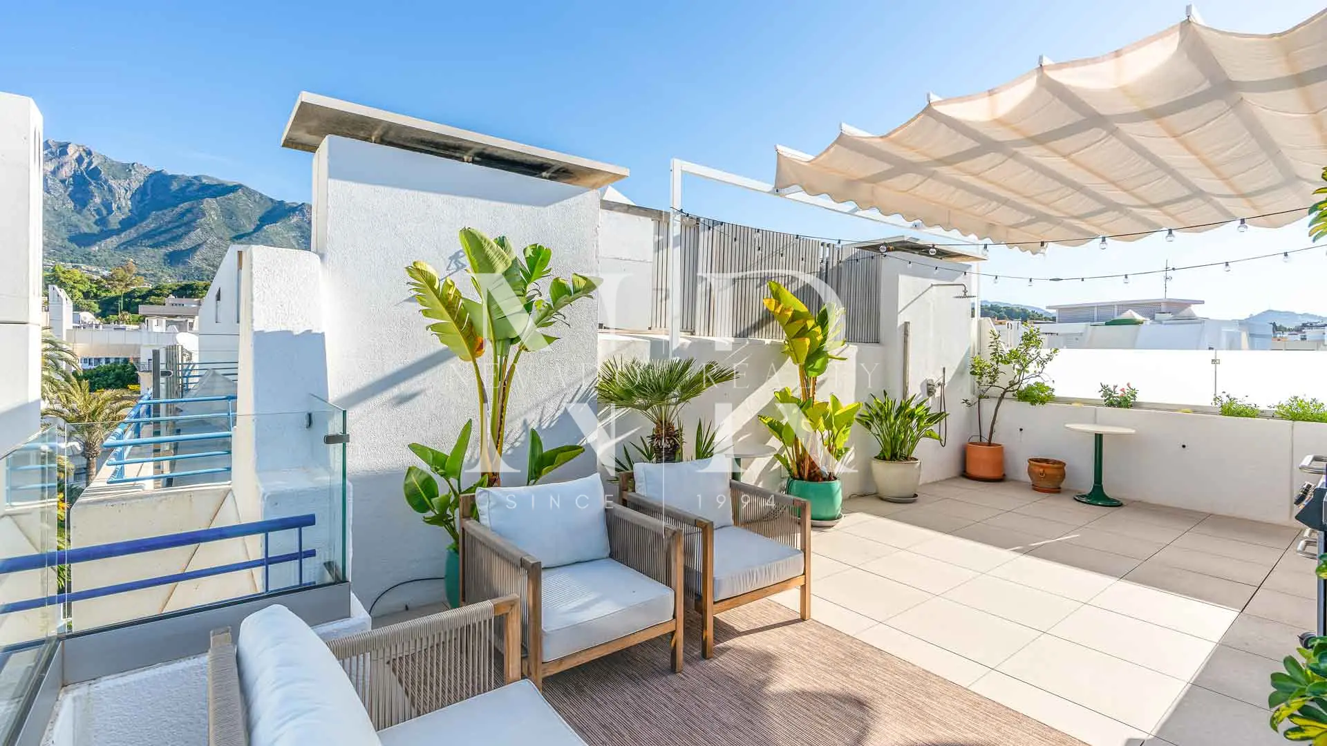 Penthouse in Marbella House urbanization with sea views for sale. Located in the second line beach complex Marbella House, this penthouse offers an unbeatable combination of luxury, privacy and sea views. Situated just steps away from the Paseo Maritimo, this completely refurbished penthouse is located in one of the most desirable areas of Marbella. With a privileged orientation, each floor is designed to make the most of the surroundings, natural light and views of the Mediterranean.