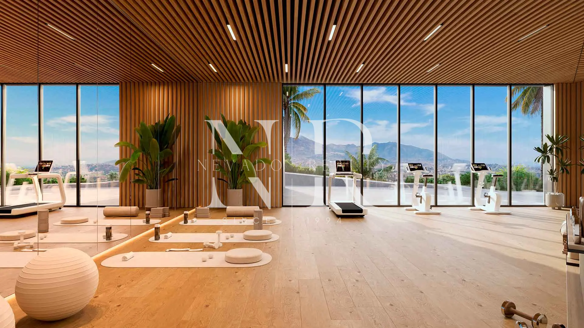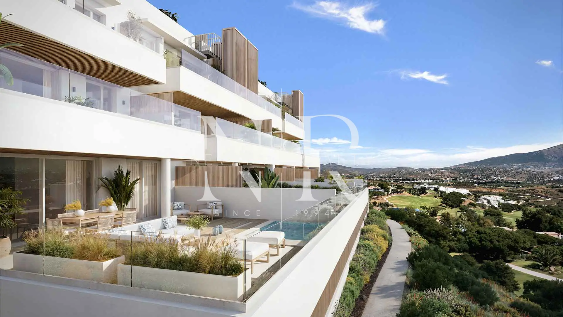 Apartment for sale in La Cala Golf, Mijas. This apartment offers an optimised layout with 2 bedrooms and 2 bathrooms, featuring a 28 m² open-plan living area that opens onto a 32.37 m² east-facing terrace. It includes an air-source heat pump and premium finishes.