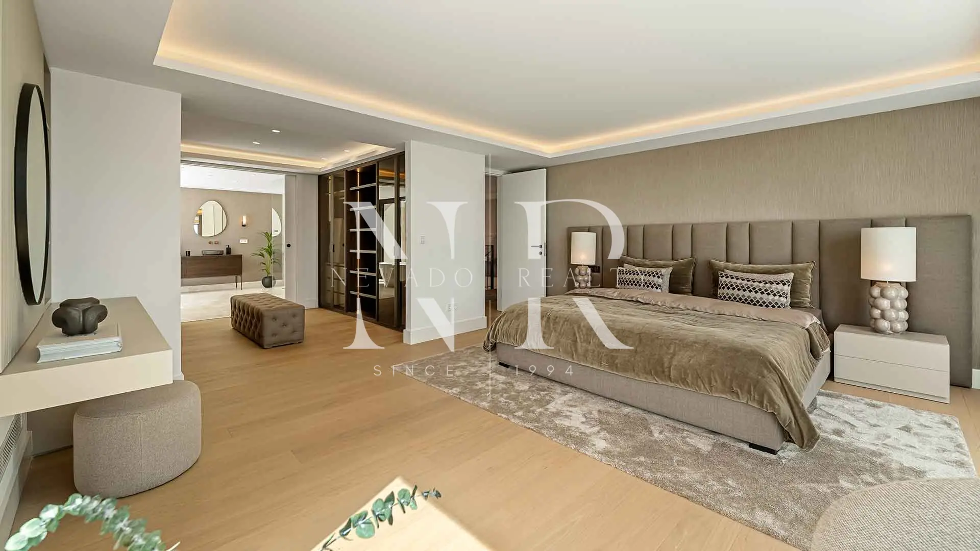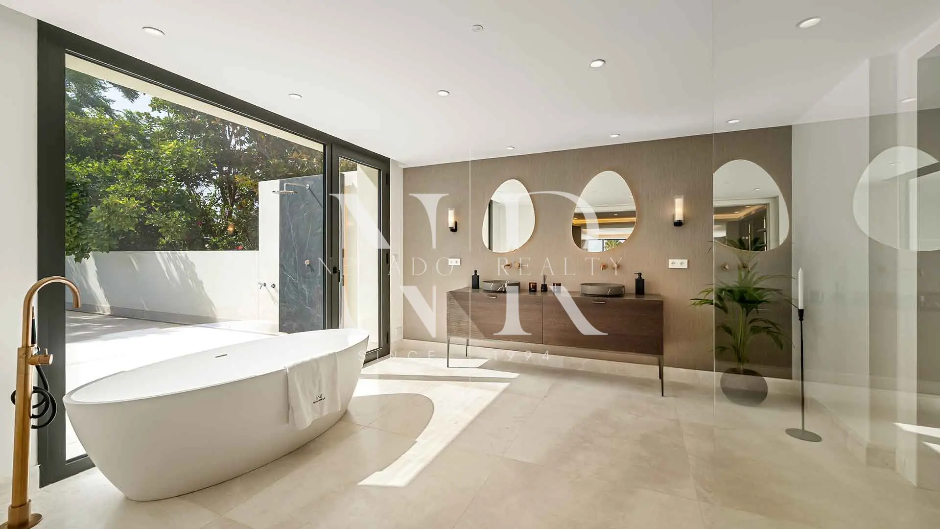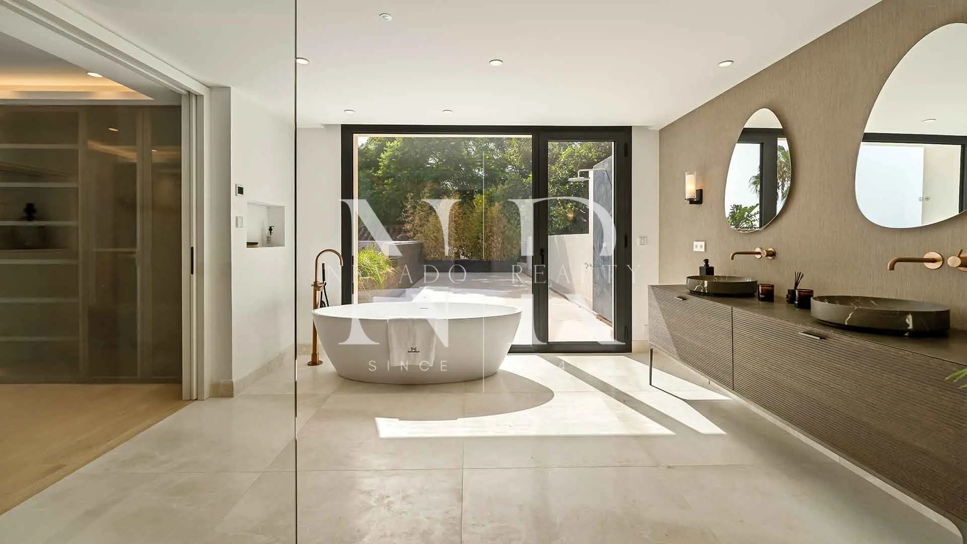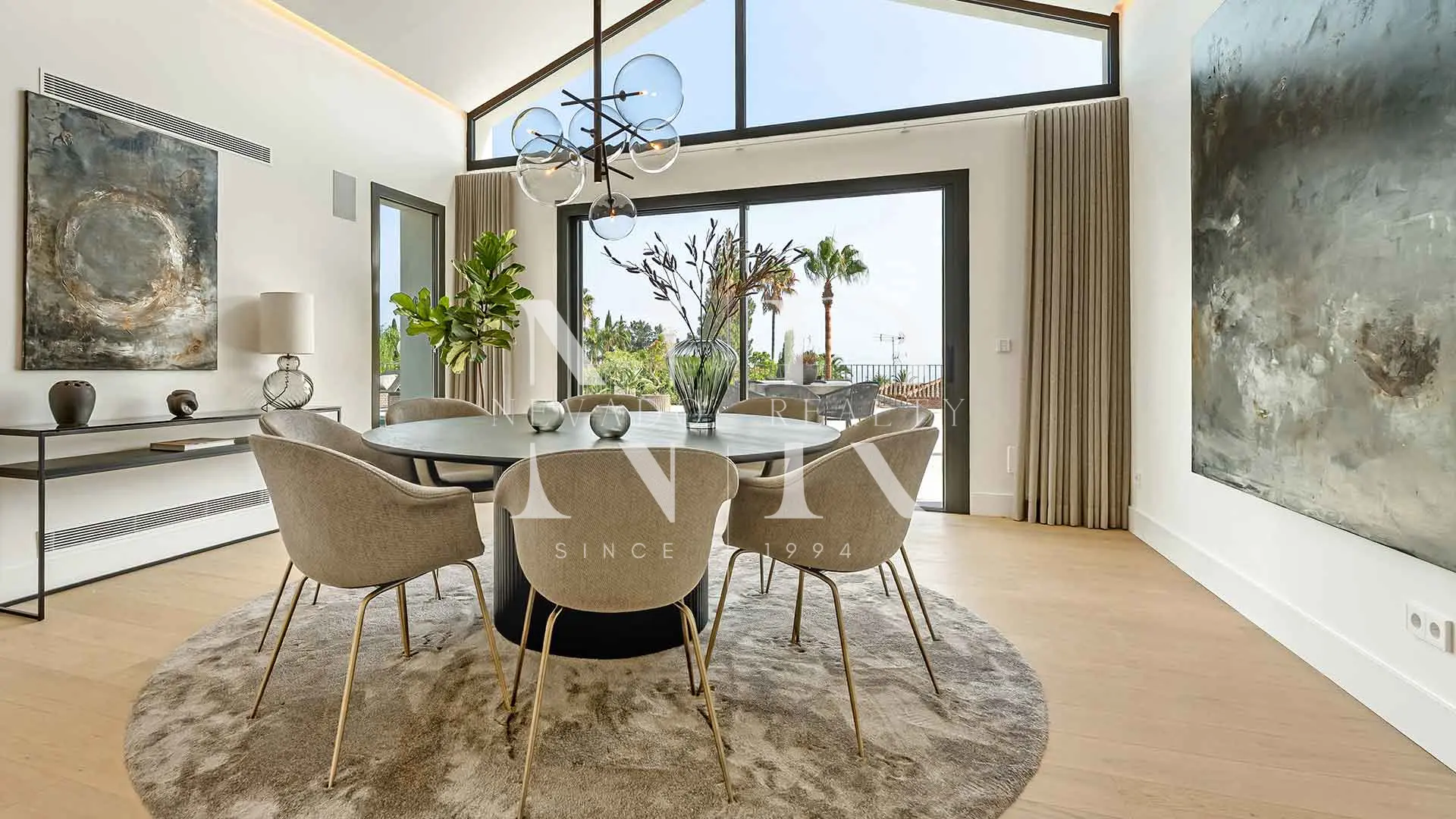 Completely modernised in 2025, the villa offers 734 m² of bright interiors featuring high ceilings, large floor-to-ceiling windows and a seamless connection between indoor and outdoor spaces.