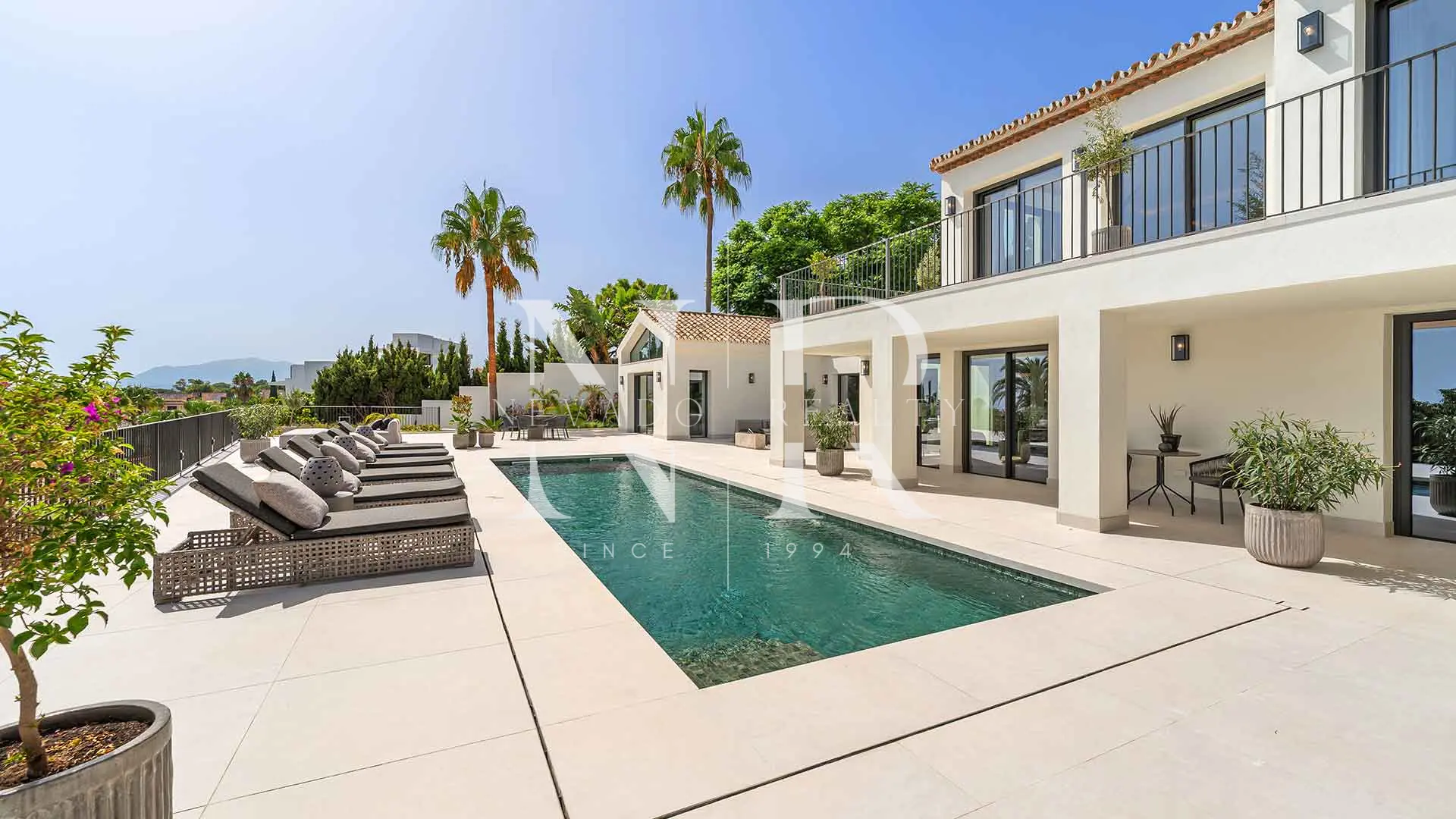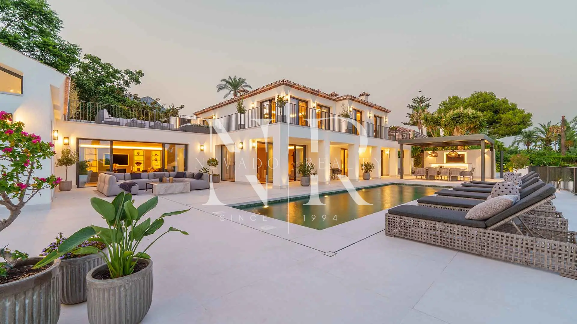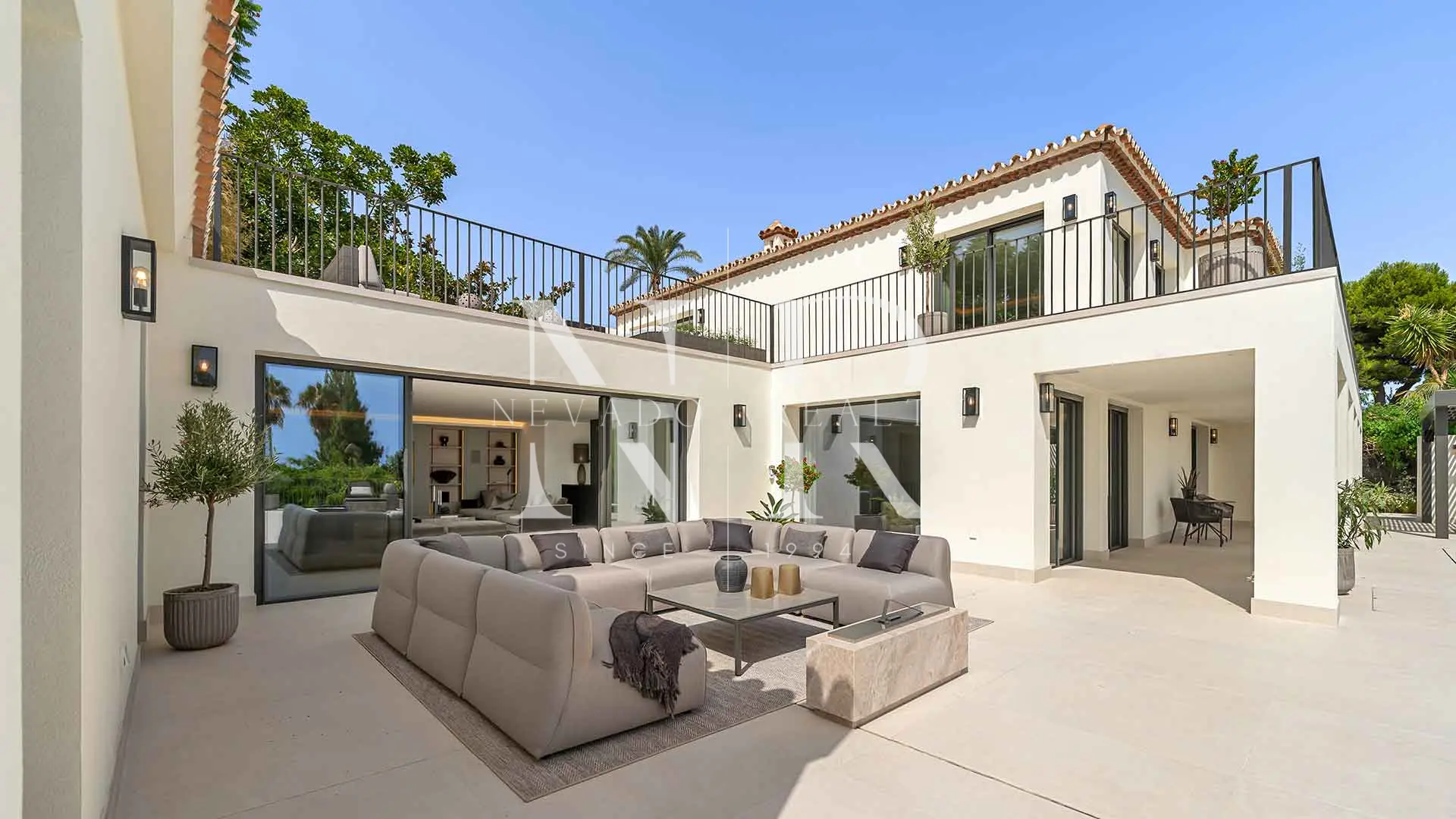 Completely renovated villa in Rocío de Nagüeles for sale. This stunning villa combines the timeless charm of Andalusian architecture with the sophistication of contemporary design. Located in the heart of Marbella’s Golden Mile, this property enjoys a south-facing orientation and open views of the Mediterranean Sea and La Concha Mountain.