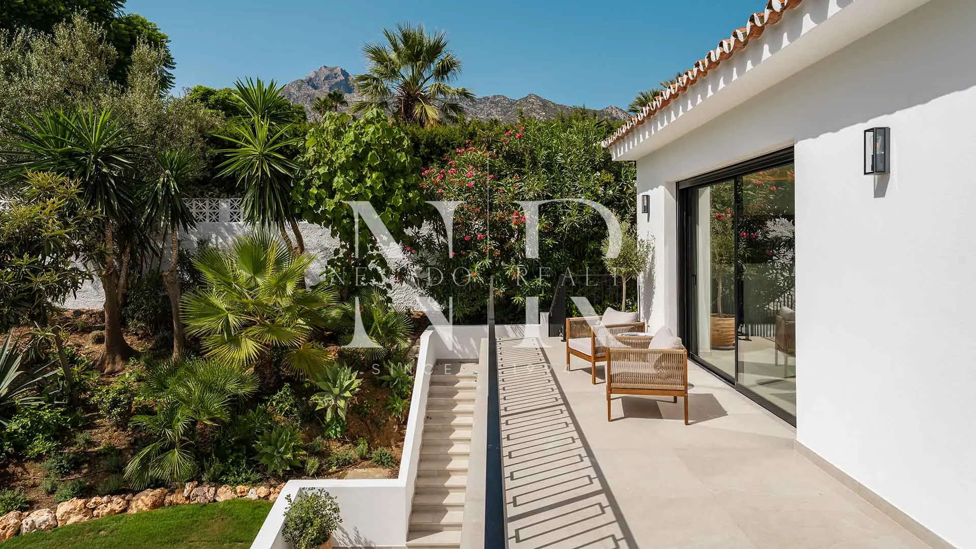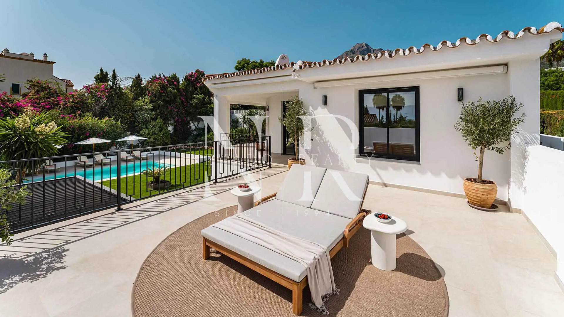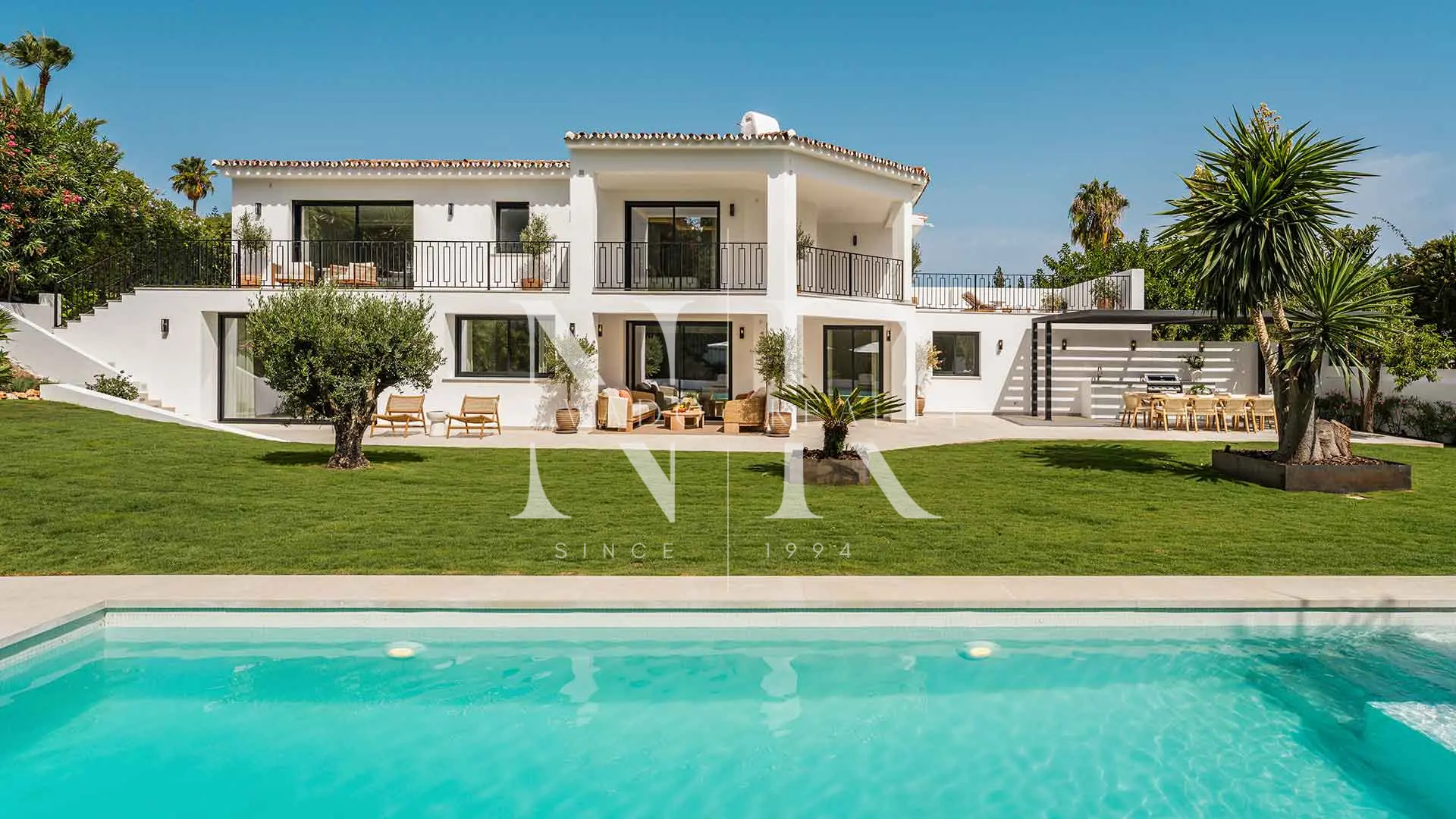 Completely renovated villa in Rocío de Nagüeles for sale. Located on Marbella’s Golden Mile, this villa is situated in one of the quietest residential areas of the city. This refined two-storey property combines modern design and timeless comfort, offering four en-suite bedrooms and a guest toilet, ideal as a family residence or second home on the Costa del Sol.