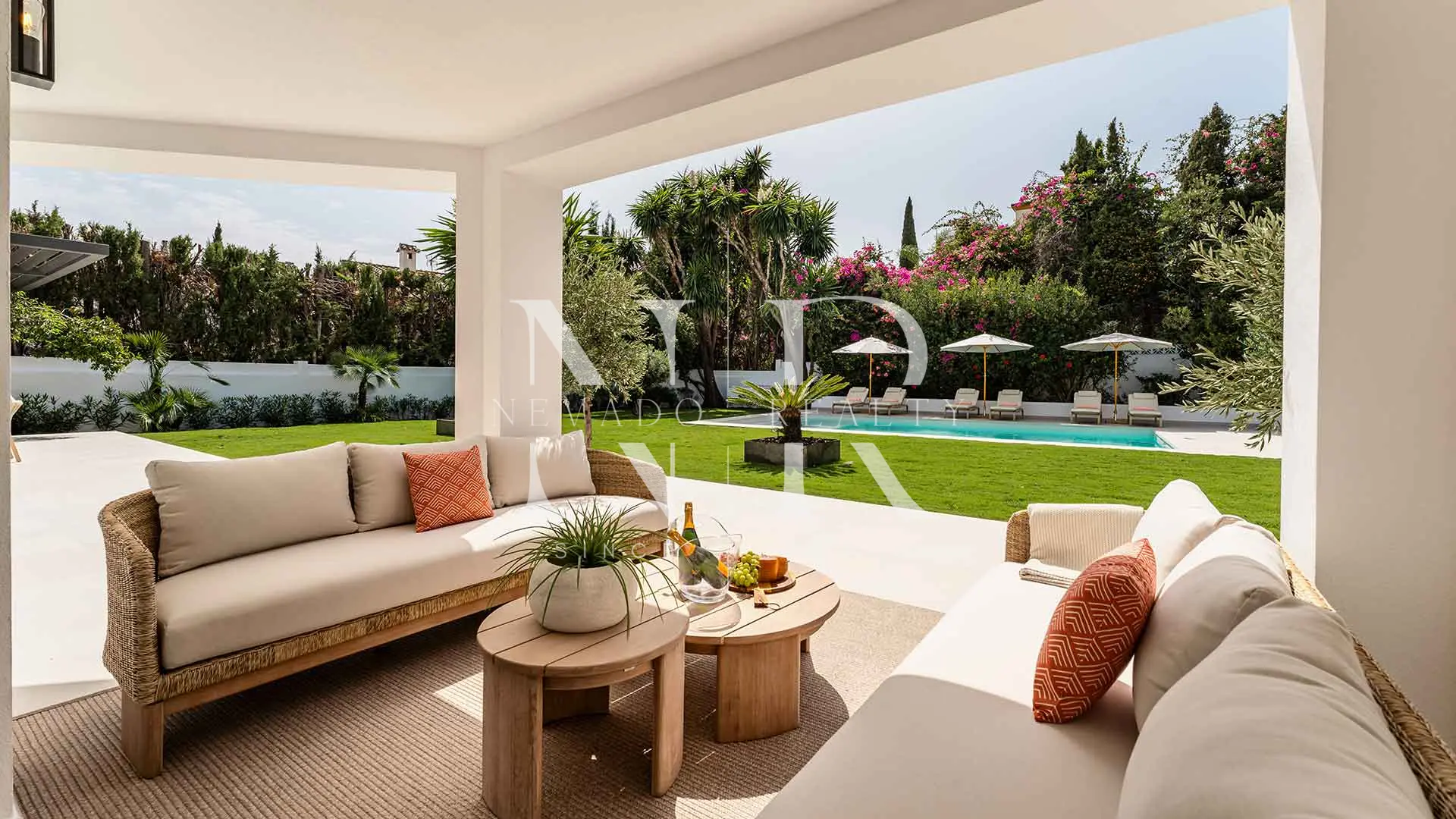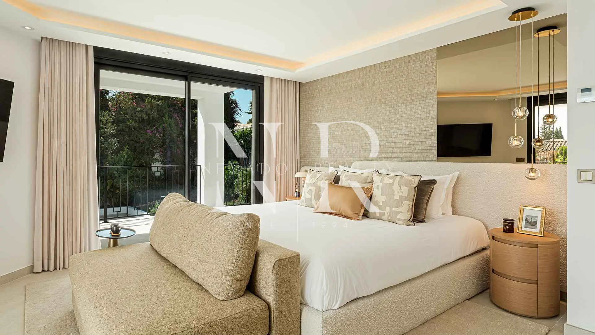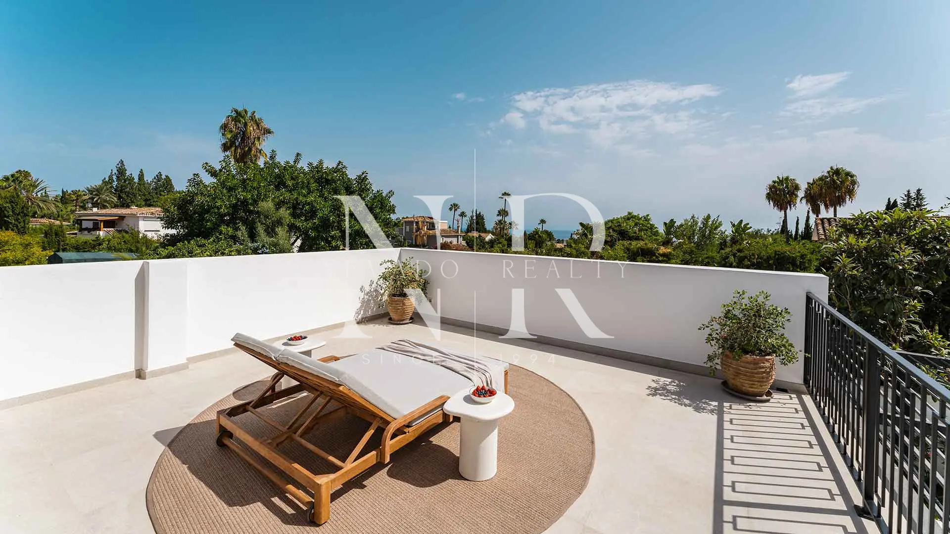 Completely renovated villa in Rocío de Nagüeles for sale. Located on Marbella’s Golden Mile, this villa is situated in one of the quietest residential areas of the city. This refined two-storey property combines modern design and timeless comfort, offering four en-suite bedrooms and a guest toilet, ideal as a family residence or second home on the Costa del Sol.