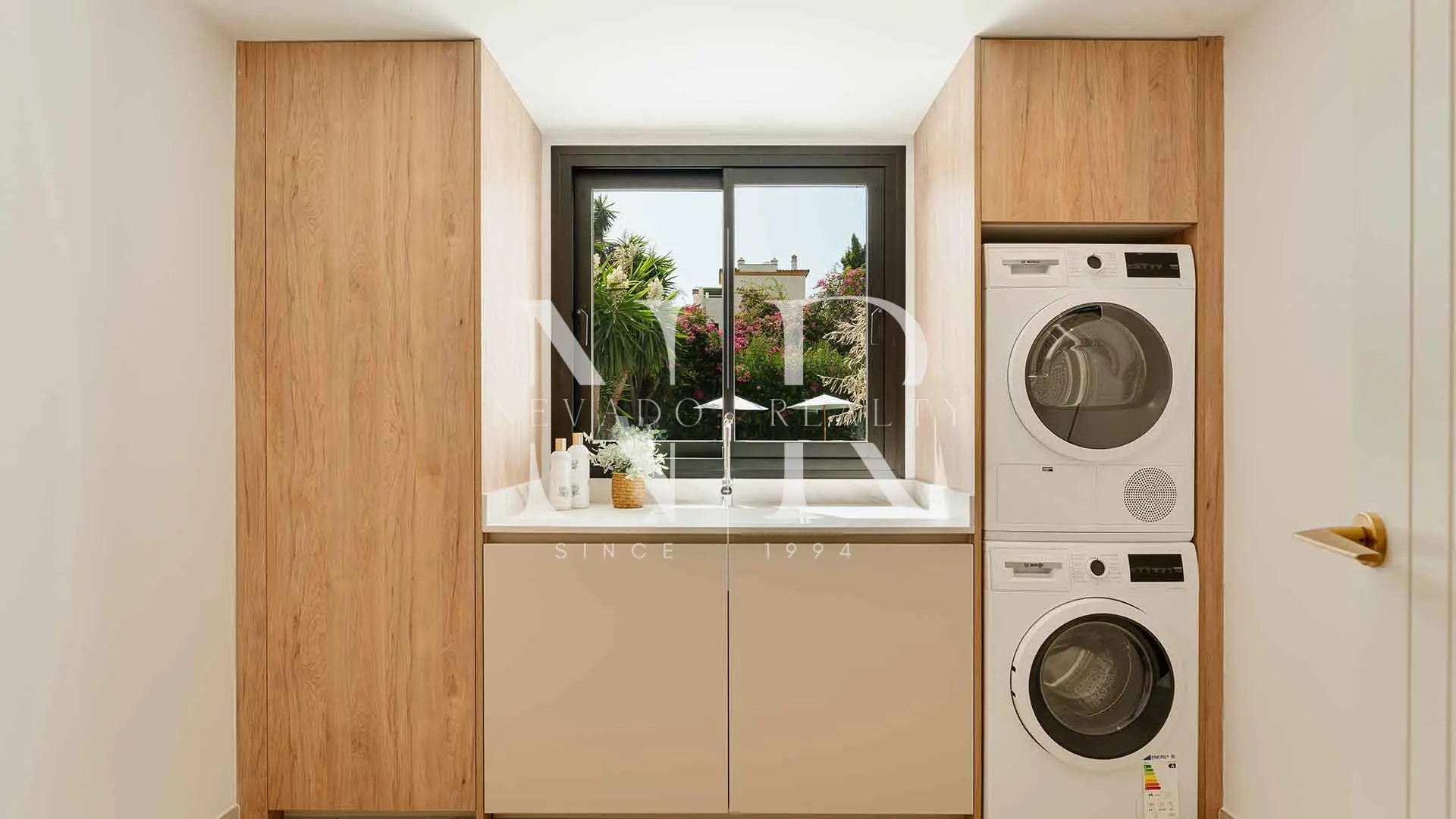 Southwest facing, with large sun-drenched terraces perfect for relaxing or enjoying al fresco dining. Its landscaped gardens and heated swimming pool invite you to take advantage of the mild climate all year round. Built with top quality materials and finishes, it features porcelain flooring, a kitchen equipped with Bosch appliances, a wine cellar, electric shutters, home automation, a separate laundry room and an outdoor kitchen.