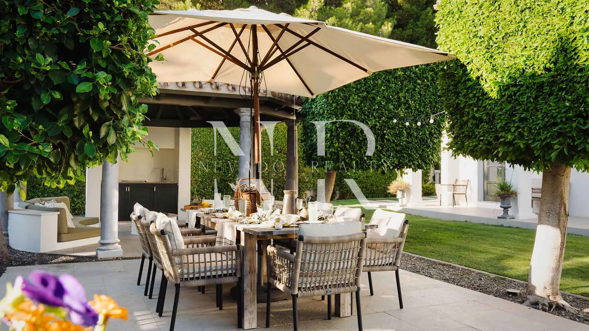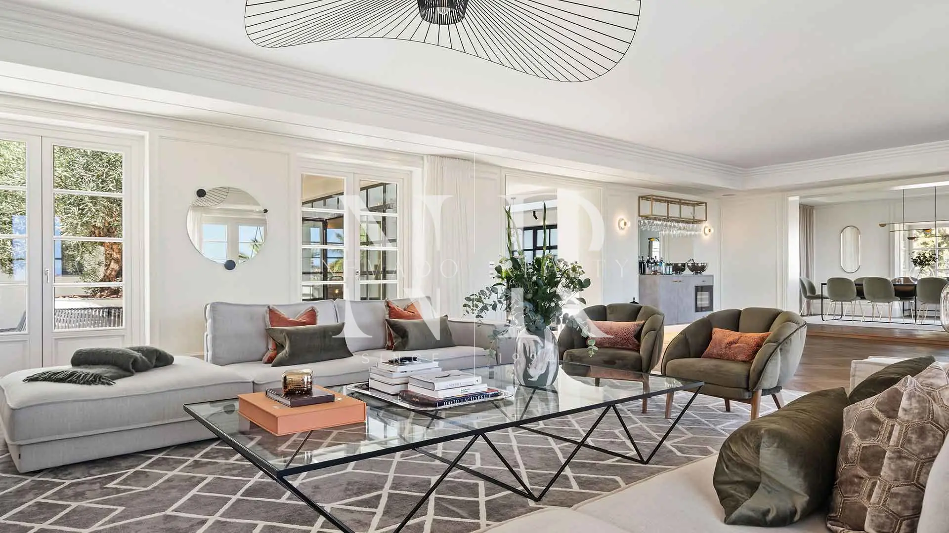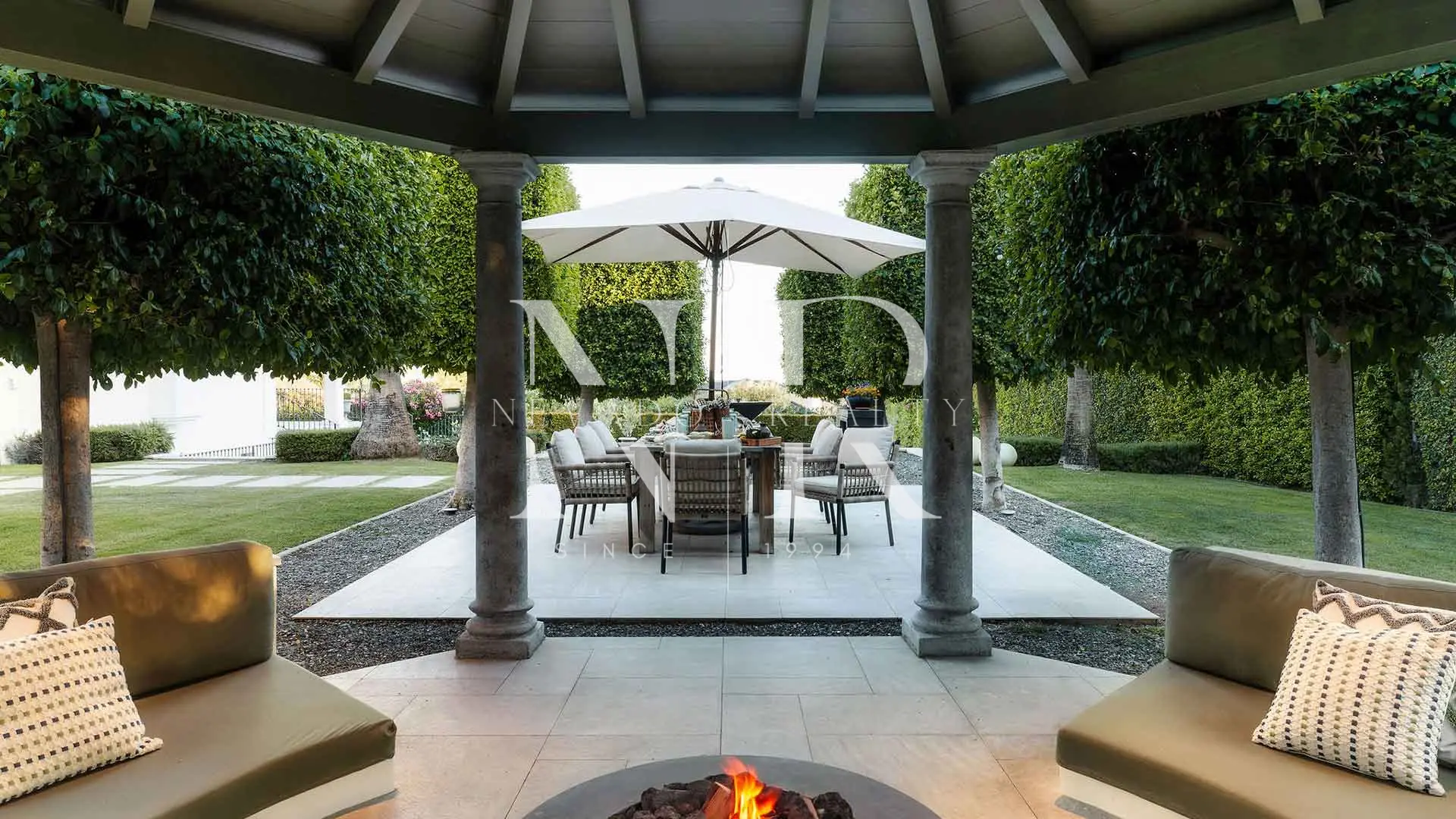 • The exterior is designed for outdoor living, featuring 400 m² of terraces (covered and open-air), a large private swimming pool and a barbecue area set within a mature, well-maintained garden.