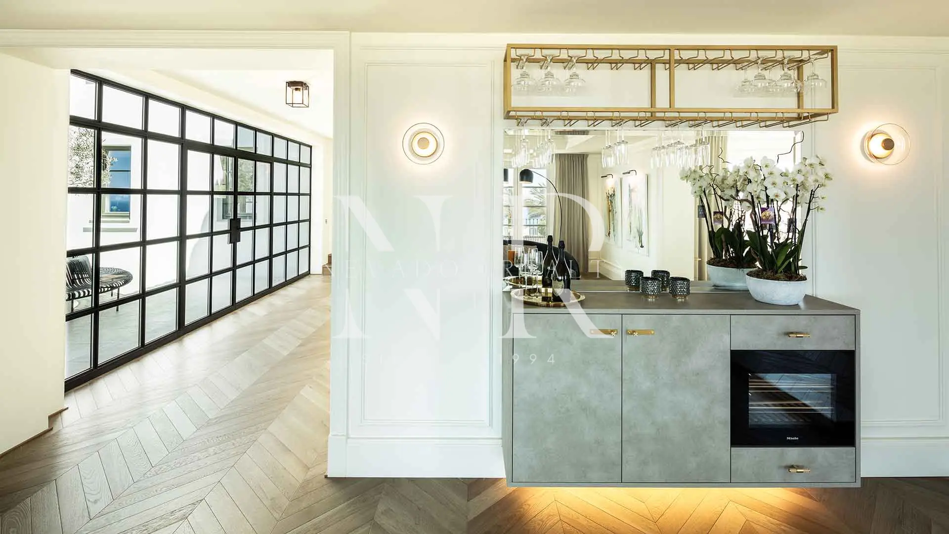 The villa is situated in the highest part of Marbella’s Golden Mile, within the exclusive Sierra Blanca area. This location guarantees privacy and security through a gated community system with 24-hour surveillance. Geographically, the property is situated between the Sierra Blanca mountain range and the coast, allowing access in under 10 minutes to high-end amenities such as the Puente Romano Beach Resort, the Marbella Club, luxury shopping centres, prestigious golf courses and various international educational institutions.