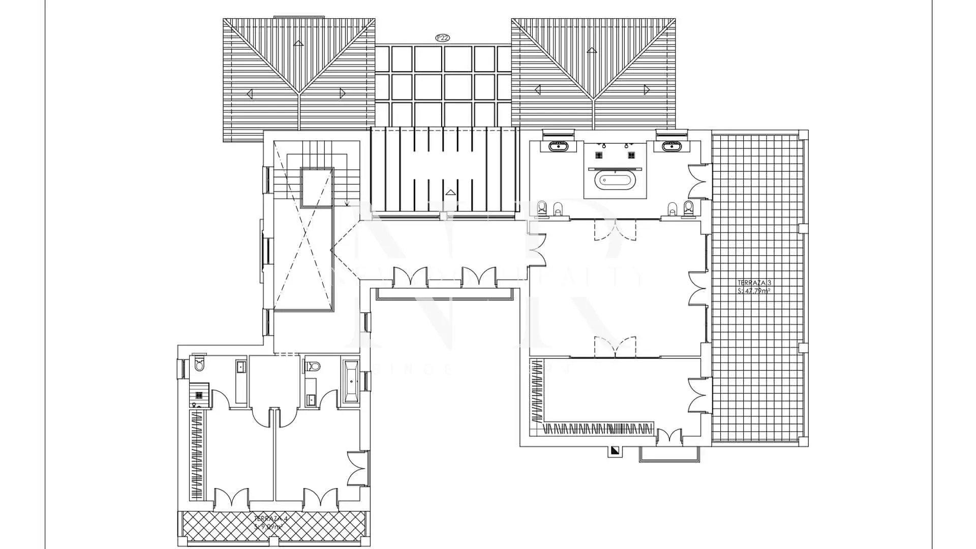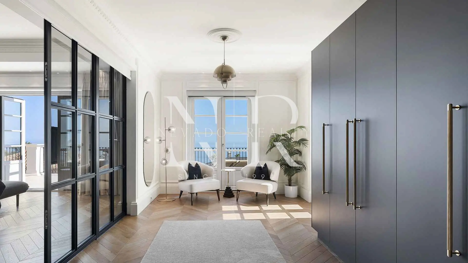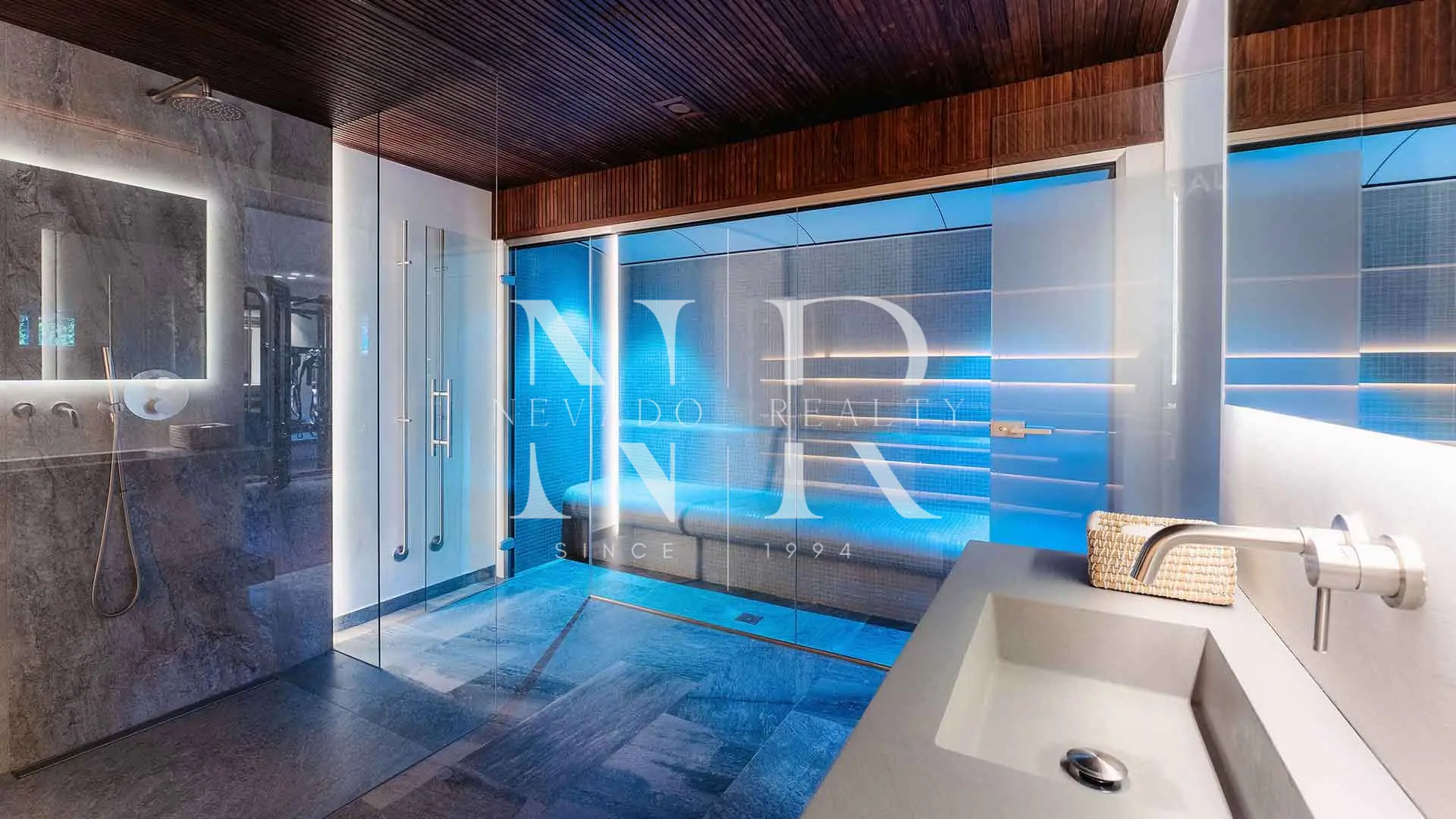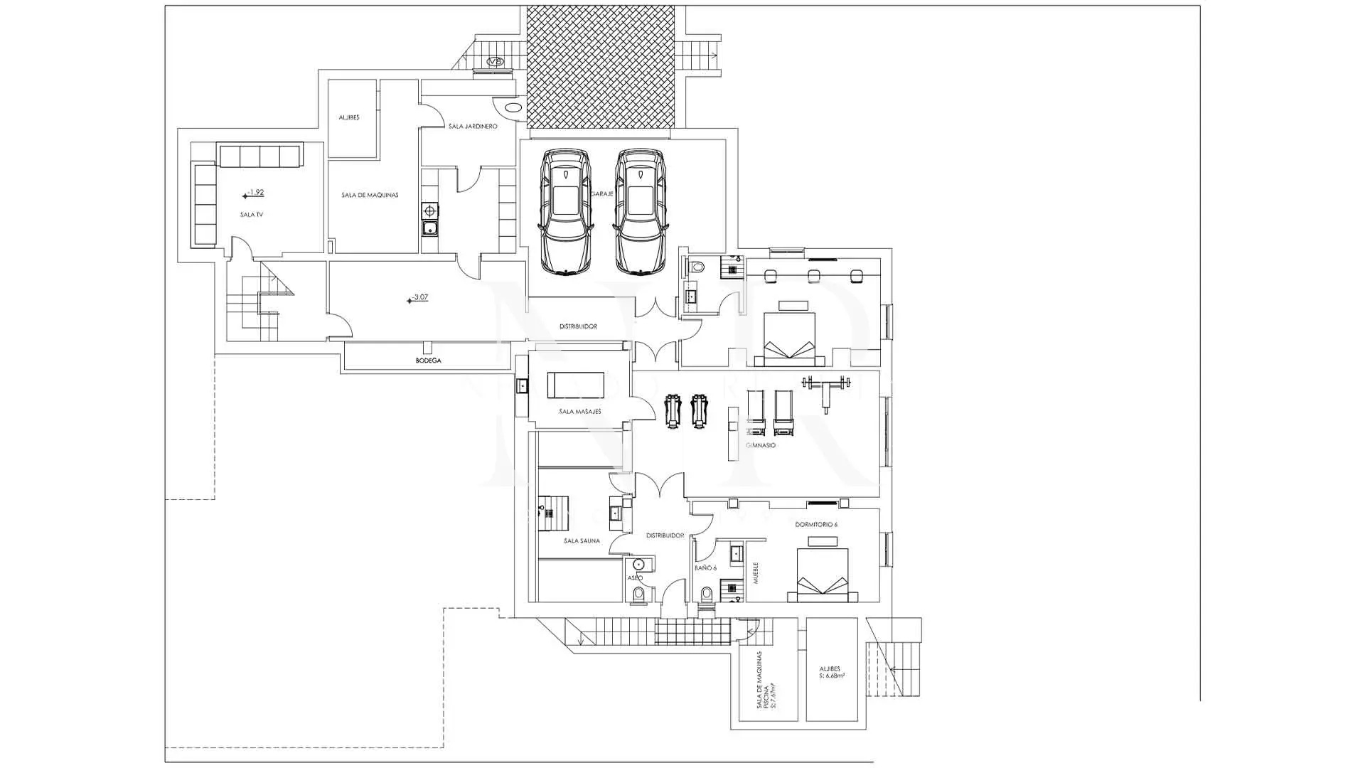 • Lower Level (Wellness and Leisure Area): This level is fully equipped with a professional gym, private cinema, sauna, Turkish bath and massage room. It also includes a laundry area, a private garage for two cars and two further bedrooms with en-suite bathrooms.