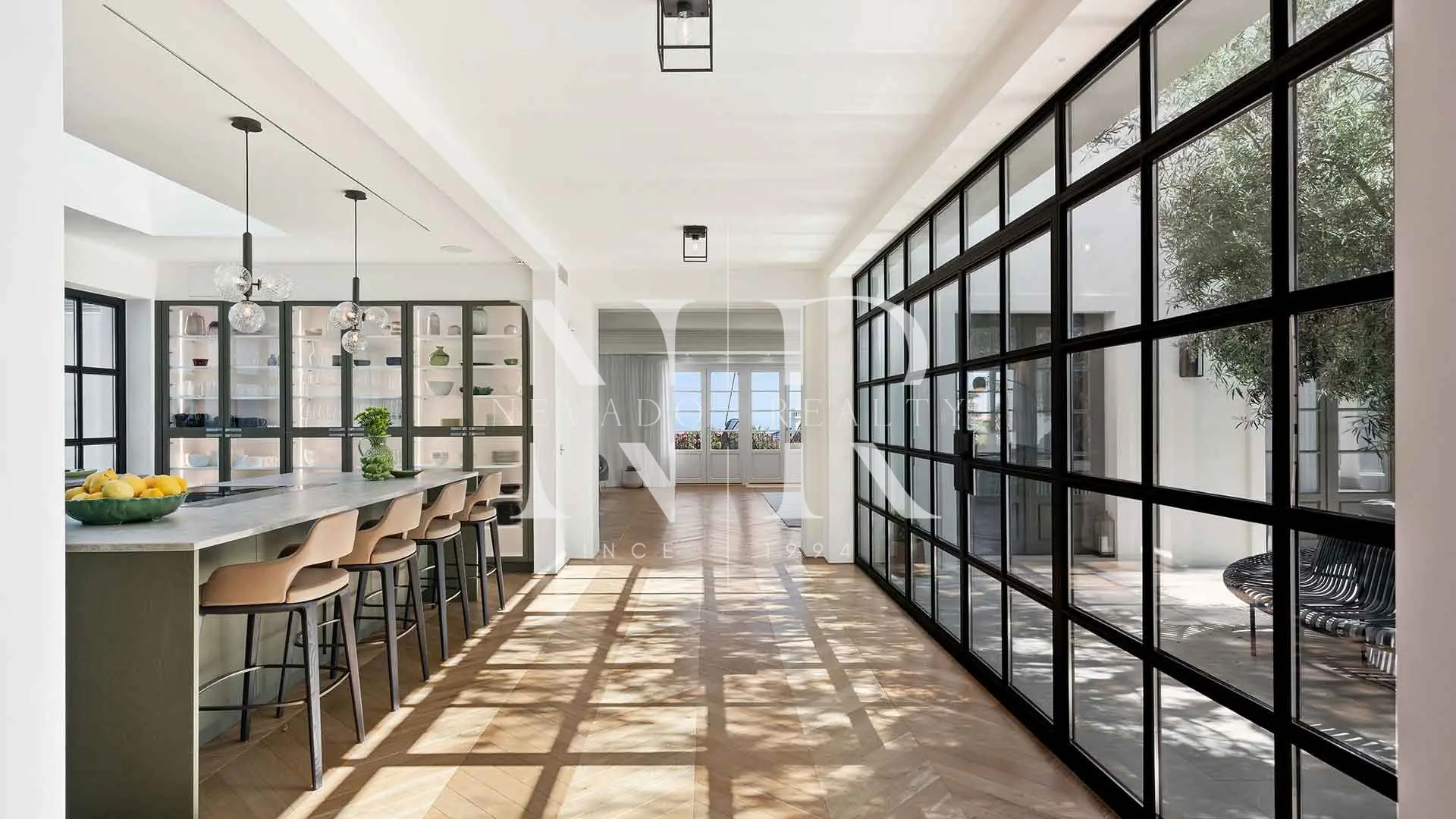 The property, built in 2019, features architecture that blends traditional Andalusian aesthetics with Nordic-style interiors and herringbone Italian oak flooring. It is laid out over three functionally connected levels: