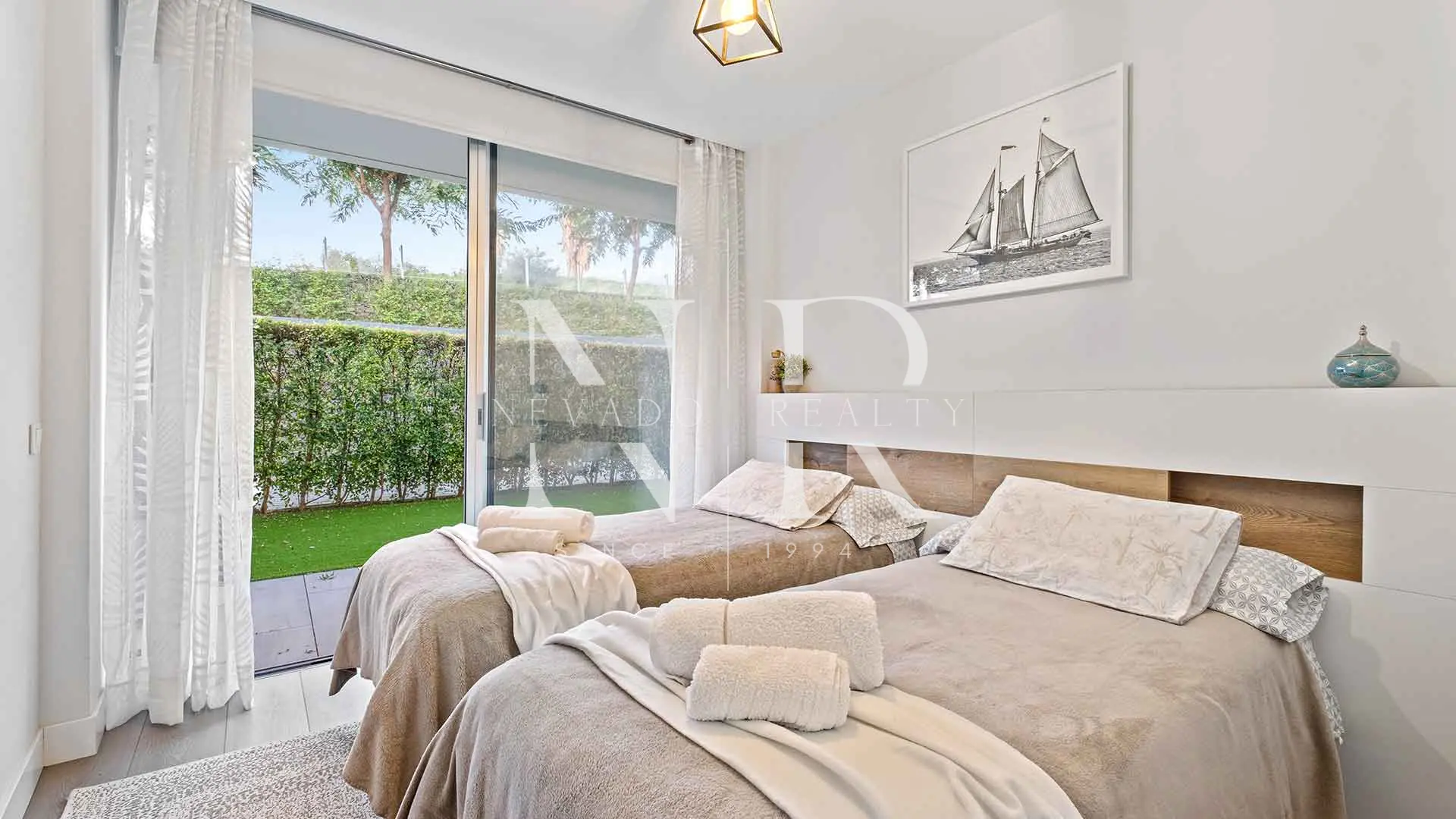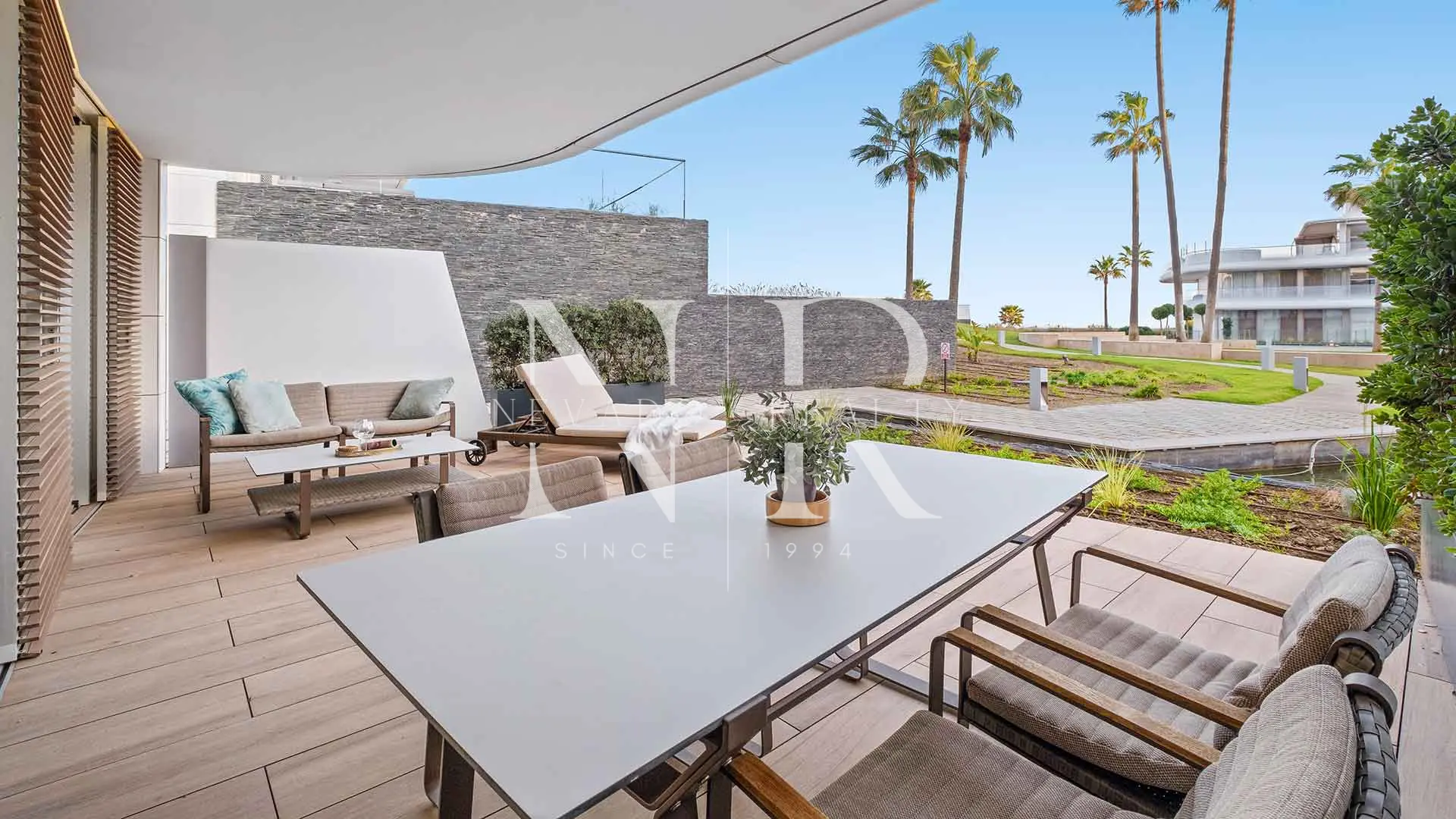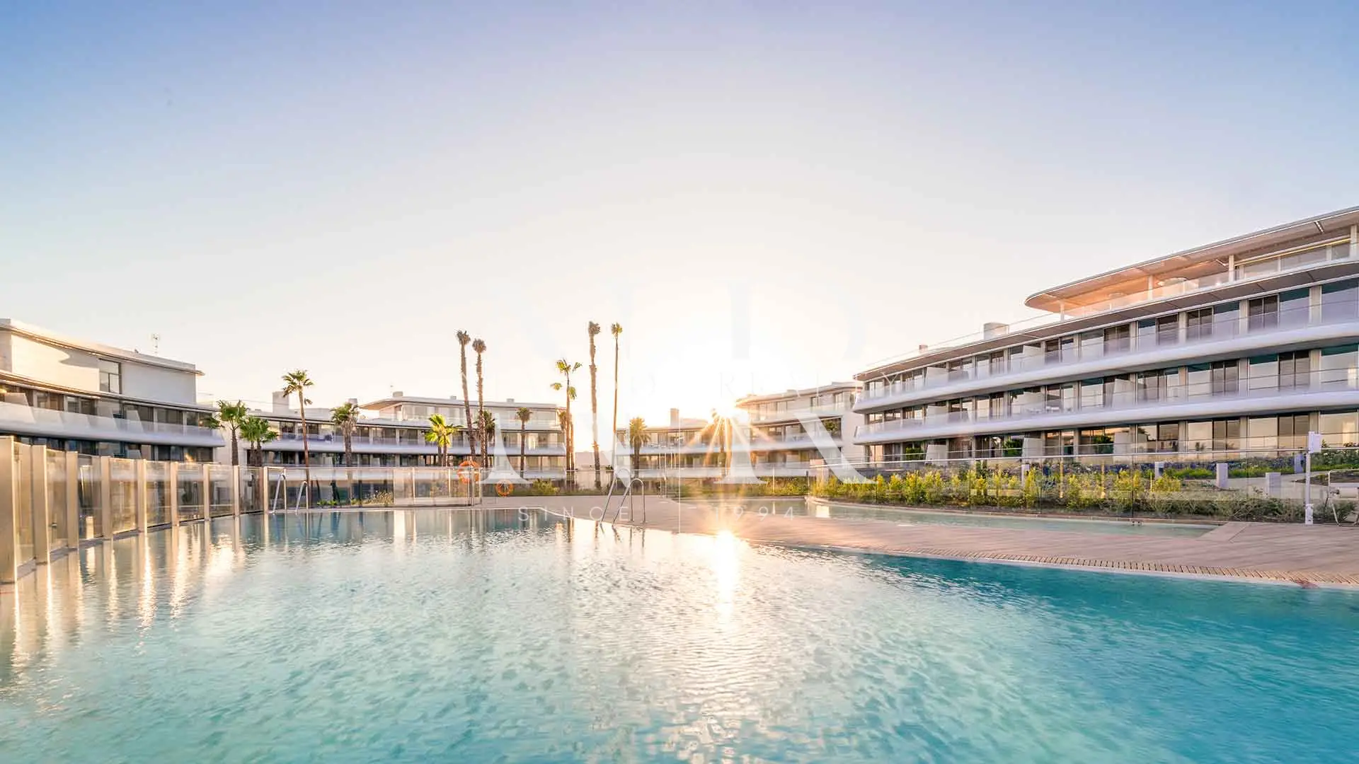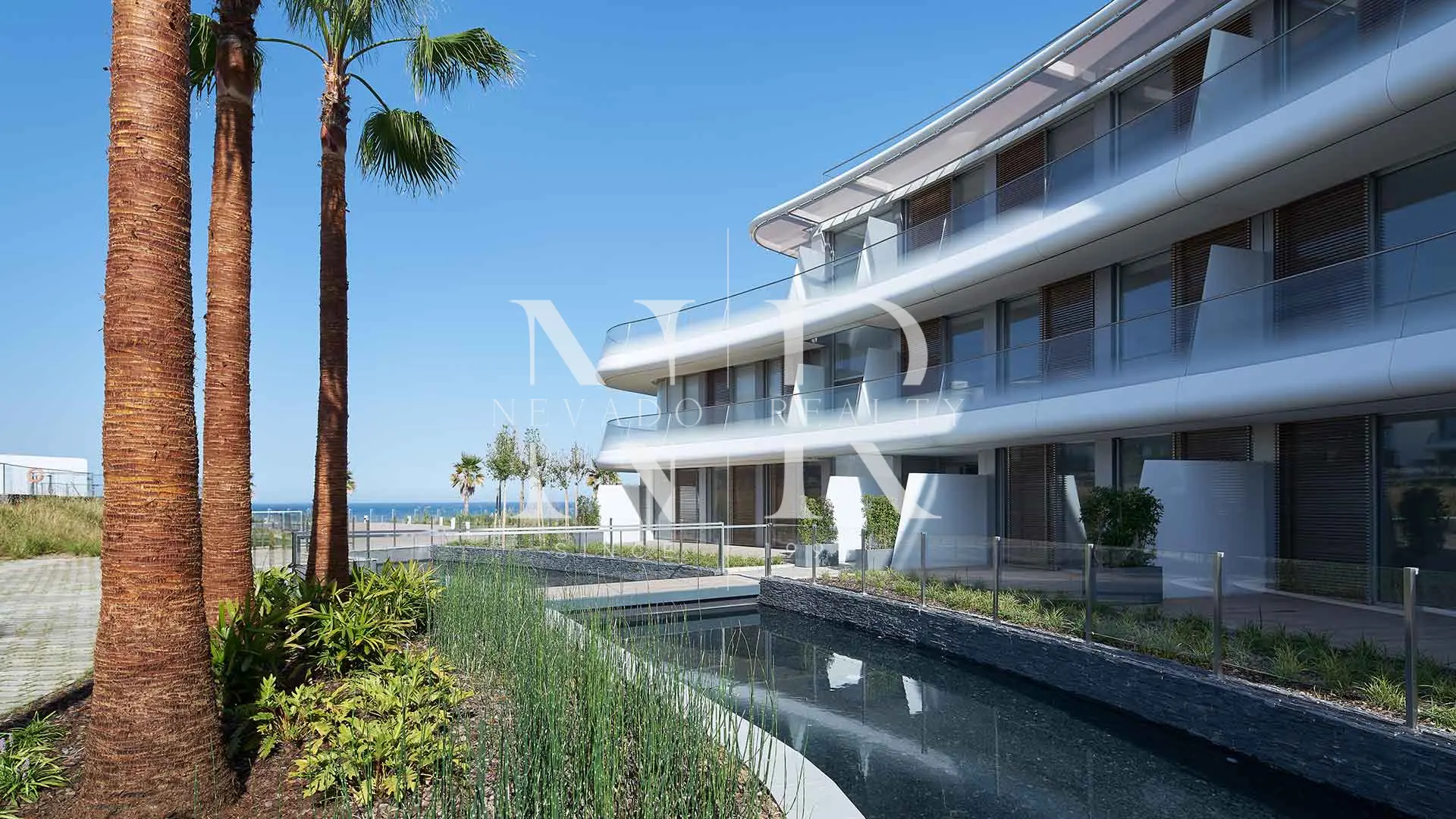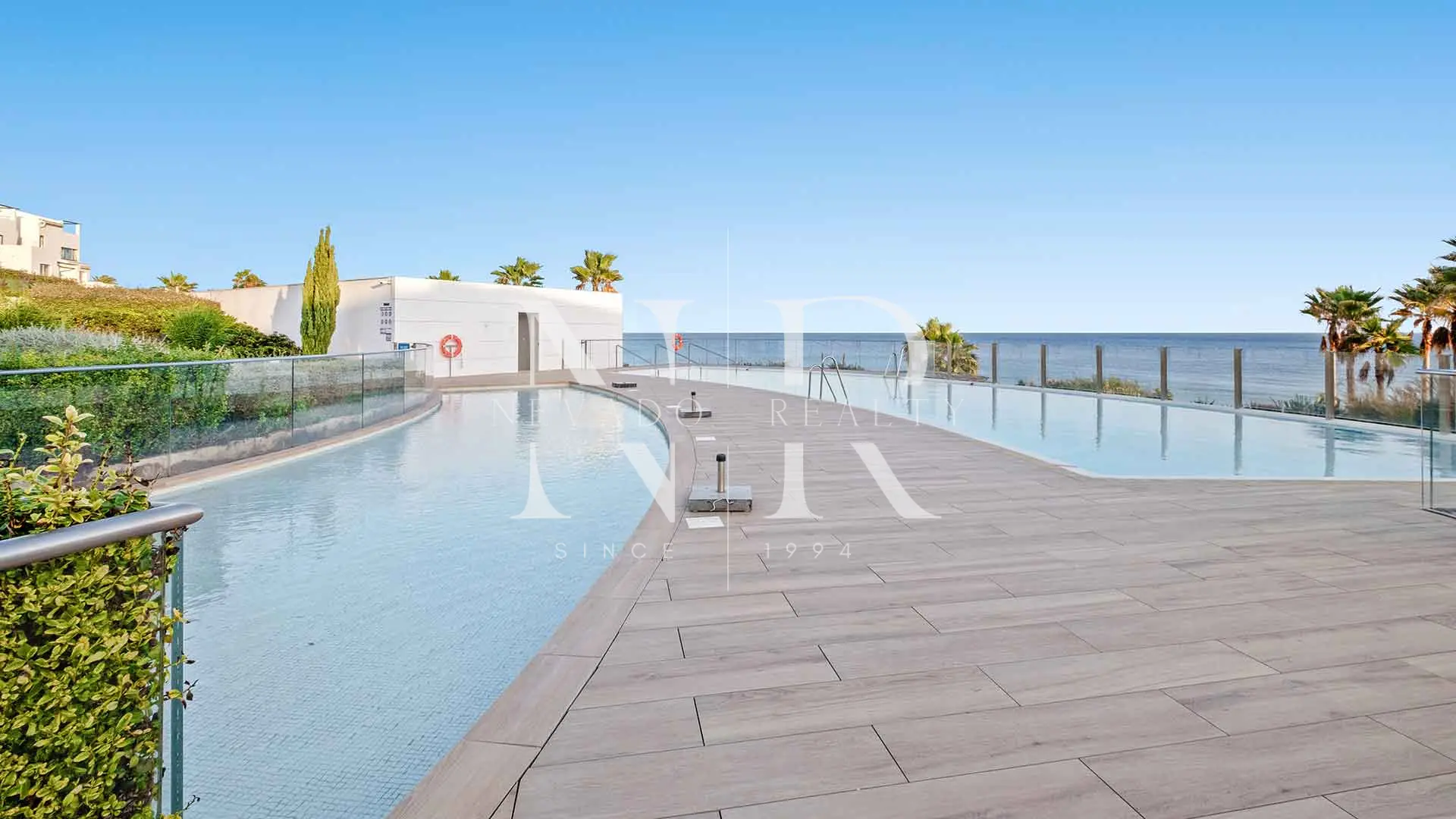 Beachfront apartment for sale in The Edge, Estepona. Discover an exceptional opportunity to live on the beachfront in one of the most prestigious complexes on the New Golden Mile: The Edge, a gated community with cutting-edge design located just minutes from the center of Estepona. This two-bedroom, two-bathroom ground-floor apartment offers a unique residential experience where modern architecture, a prime beachfront location, and top-notch amenities combine in perfect harmony.